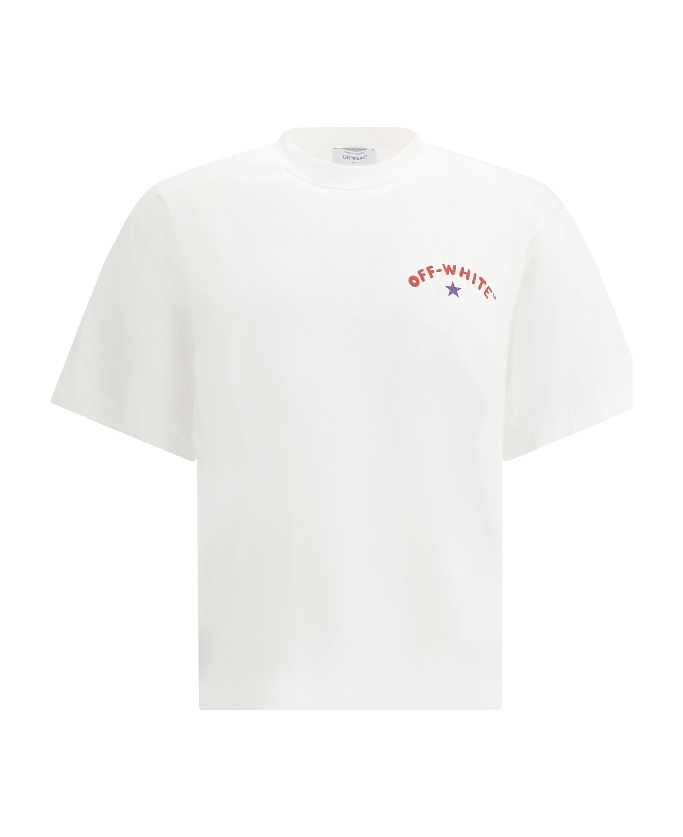 Cotton star arrow skate t-shirt by off-white features a minimalist and distinctive design, thanks to the ribbed crew neck that enhances its simplicity. the brand's iconic monogram placed on the front and maxi print on the back adds a recognizable touch and eye-catching visual contrast. the regular fit ensures comfort.