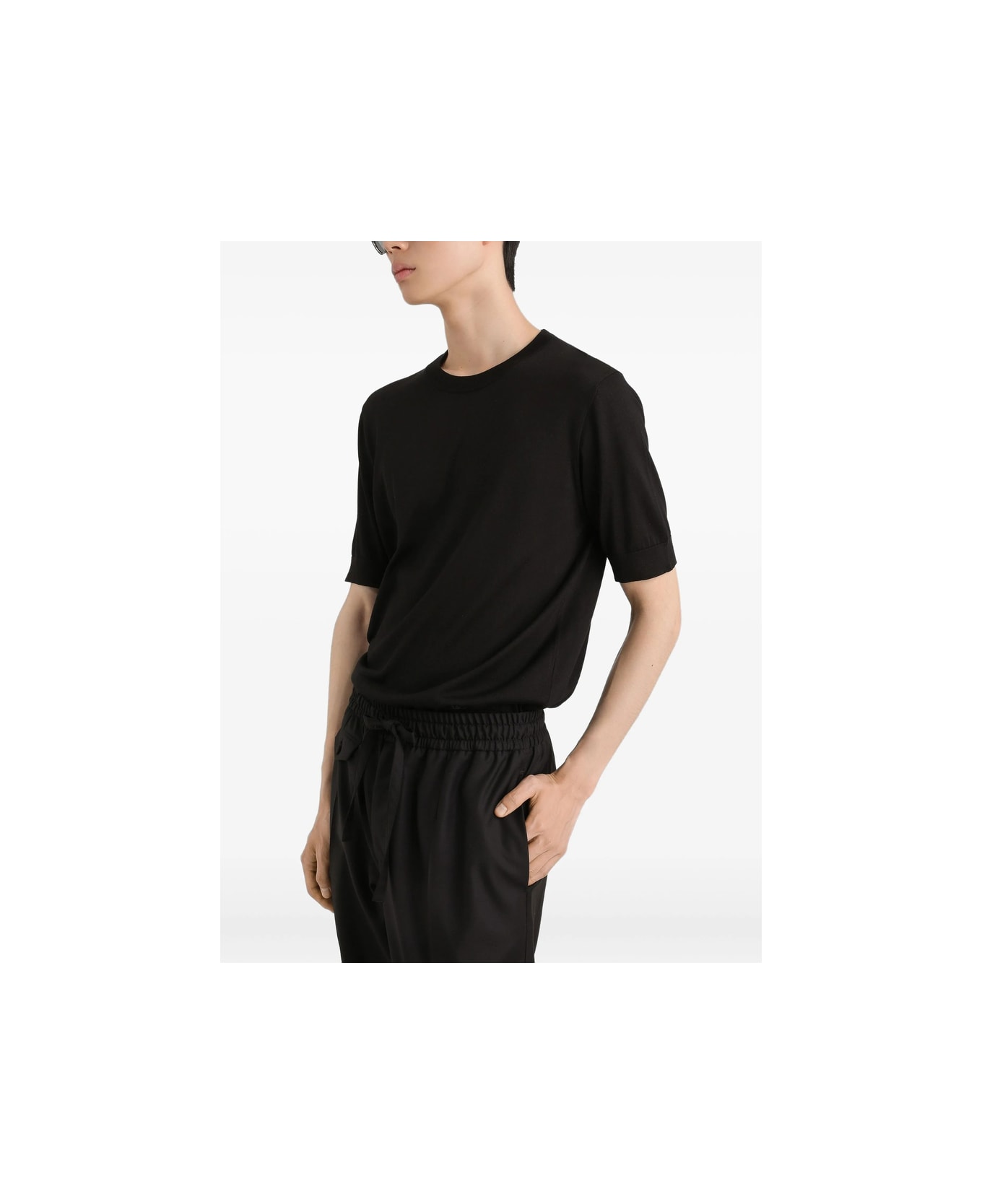 black logo embroidered round neck short sleeves ribbed hem ribbed cuffs