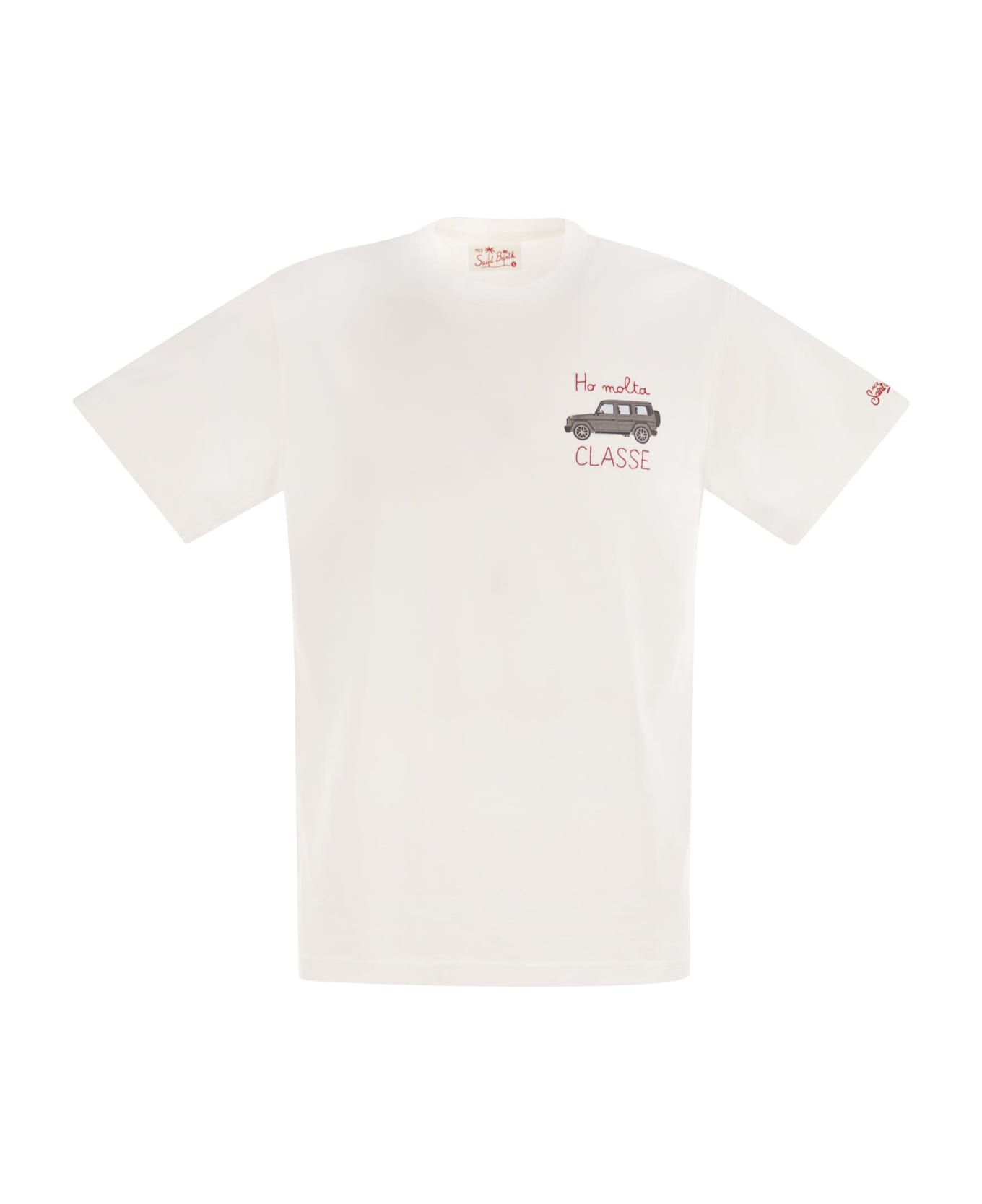 Introducing the iconic men's t-shirt from MC2 Saint Barth, featuring big, bold prints on the brand's favourite themes, including travel, lifestyle, iconic destinations, cocktails and the coolest collaborations. This men's half-sleeve t-shirt is made from 100% organic cotton jersey fabric. It has a regular fit for comfortable wear and is adorned with embroidery on the chest, as well as MC2 Saint Barth embroidery on the bottom of the left sleeve. - Left chest print - Crew neck - Short sleeves - Signature embroidery MC2 Saint Barth on left sleeve - Classic fit DESIGNER ID: TSHM001 04987H