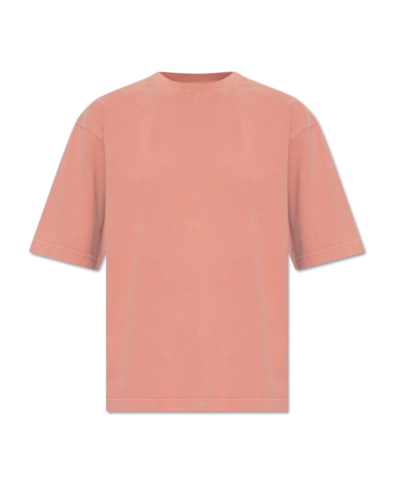 Pink T-shirt with a washed effect from Acne Studios. Crafted from cotton, this oversize design features a transparent rubber logo patch at the back, short sleeves and a ribbed crew neck.