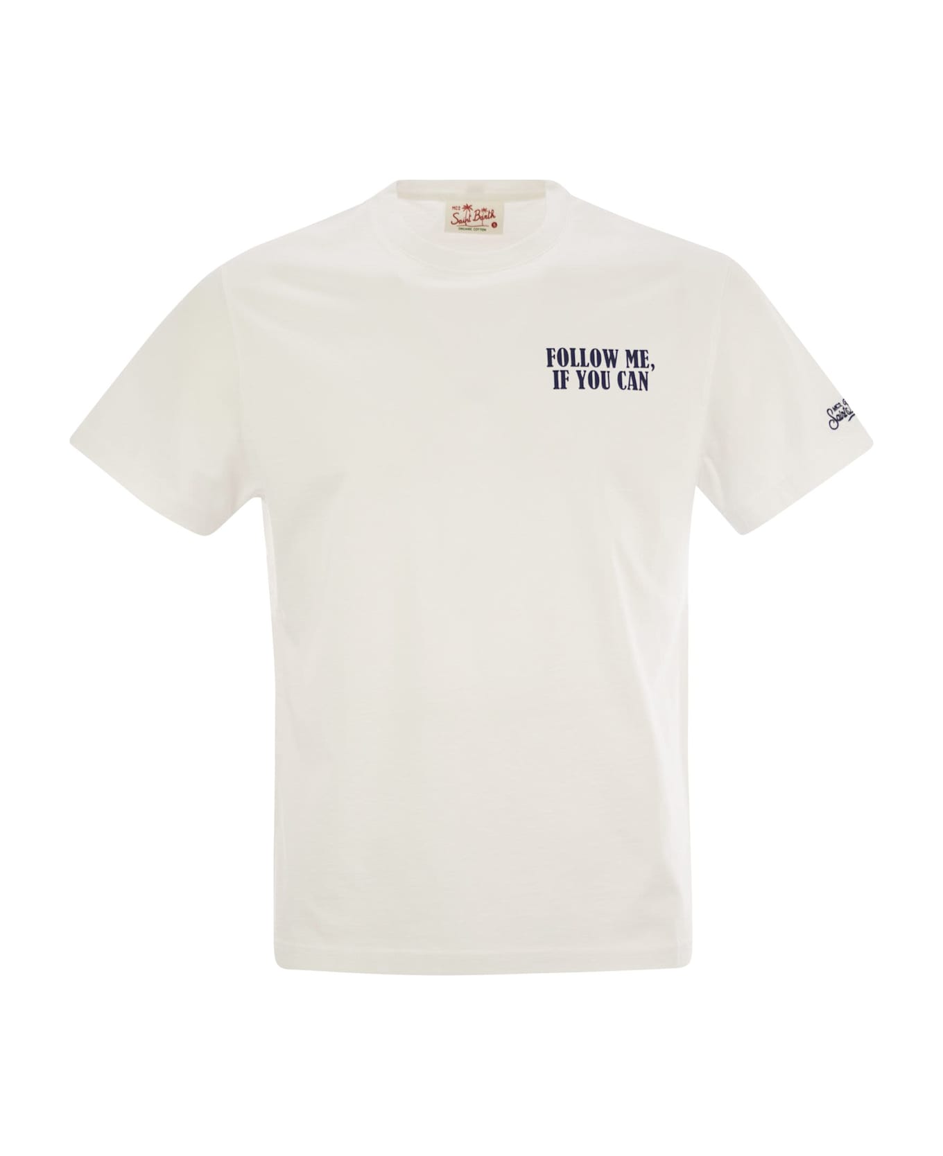 Introducing the iconic men's t-shirt from MC2 Saint Barth, featuring big, bold prints on the brand's favourite themes, including travel, lifestyle, iconic destinations, cocktails and the coolest collaborations. This men's half-sleeve t-shirt is made from 100% organic cotton jersey fabric. It has a regular fit for comfortable wear and is adorned with a print and embroidery on the chest, as well as MC2 Saint Barth embroidery on the bottom of the left sleeve. - Left chest print - Crew neck - Short sleeves - Signature embroidery MC2 Saint Barth on left sleeve - Classic fit - Large print on back DESIGNER ID: TSHM001 02389H