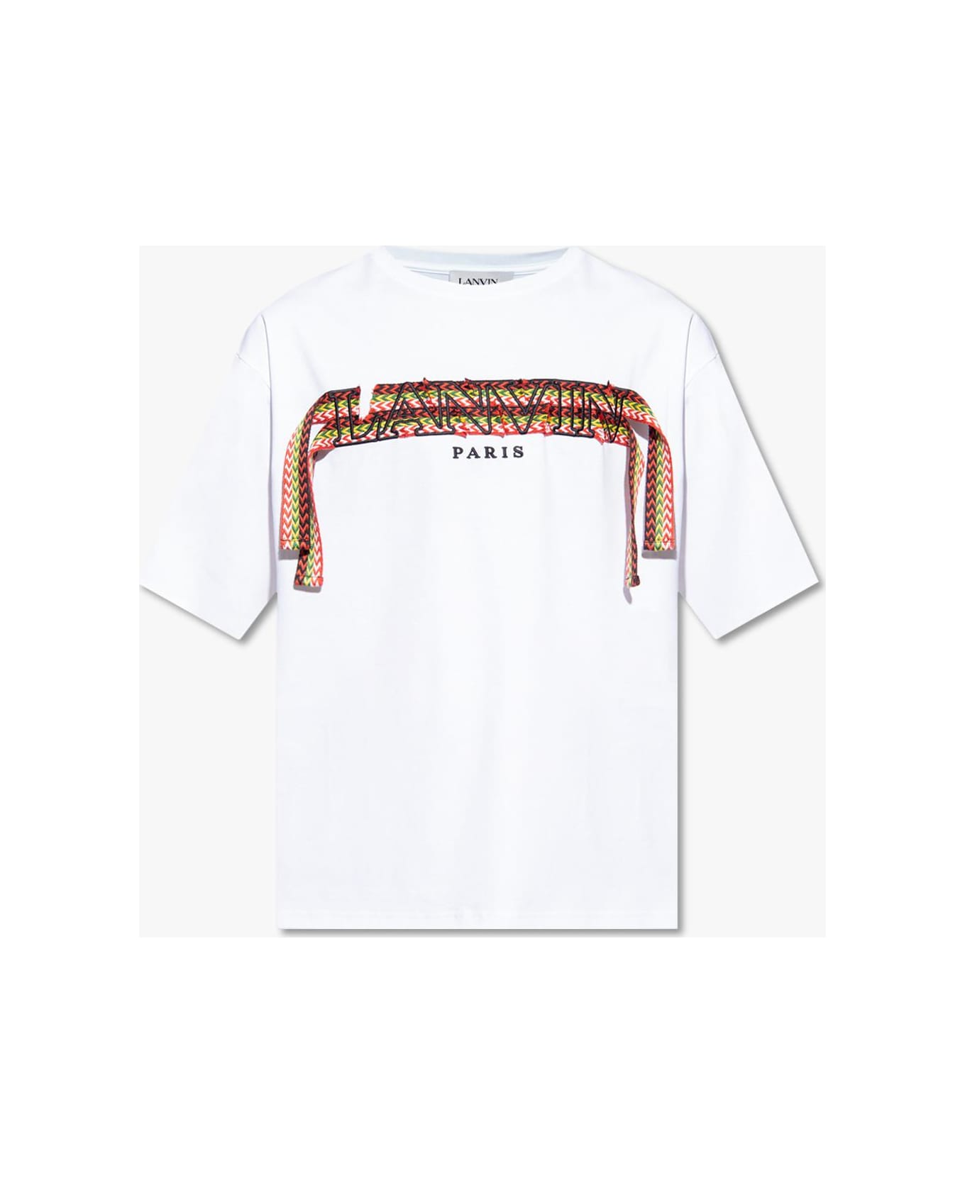 White crewneck T-shirt from Lanvin. Made of cotton, this style features a colourful logo patch with a raw trim, short sleeves and a ribbed neck. Composition: 100% Cotton