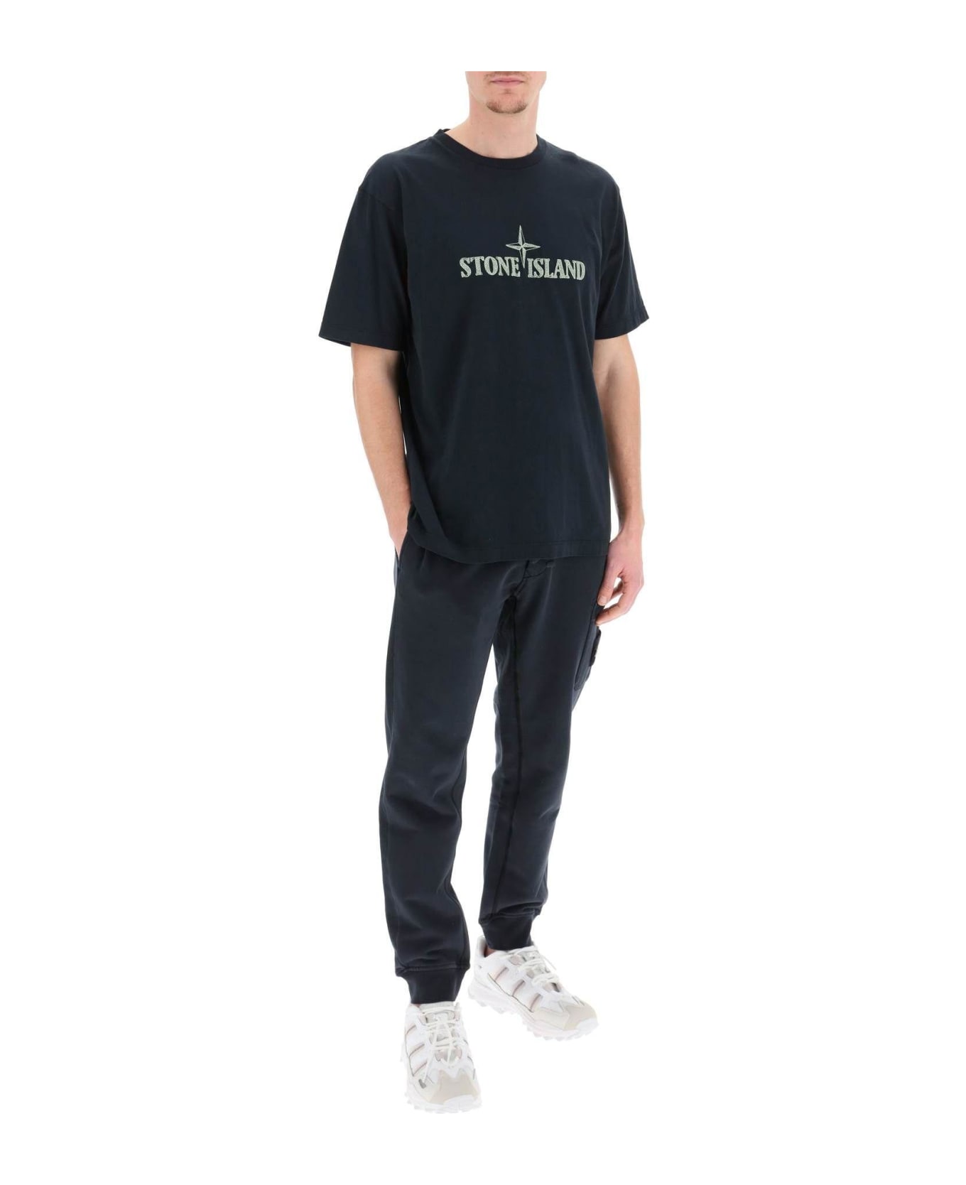 Short-sleeve t-shirt by Stone Island in cotton jersey, with logo lettering embroidery at front. Regular fit, finished with stretch ribbed crew neck. The model is 187 cm tall and wears a size L. Composition: 100% Cotton