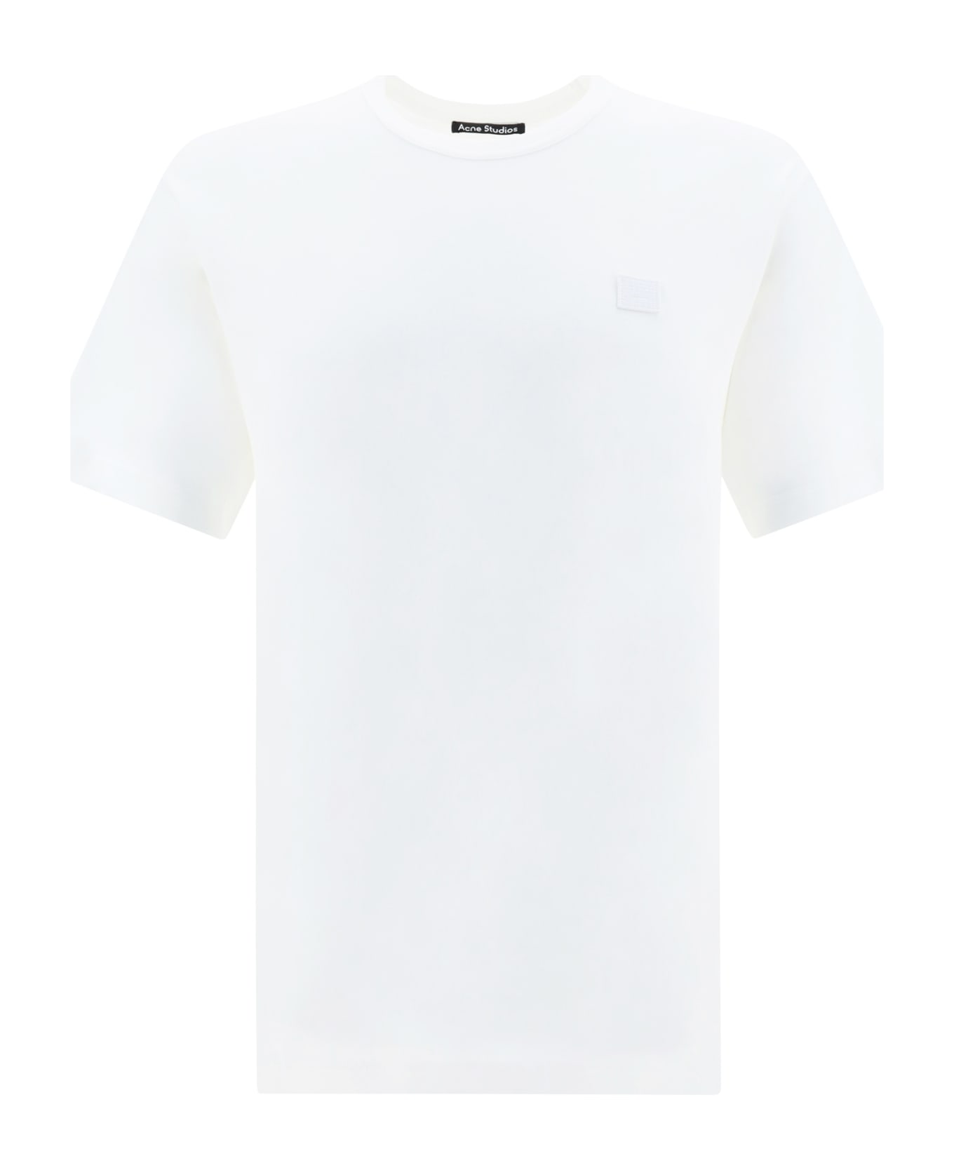Cotton t-shirt by acne studios, ribbed crew neck, iconic brand patch applied in contrast and embossed on the front, monochrome pattern, oversize fit.