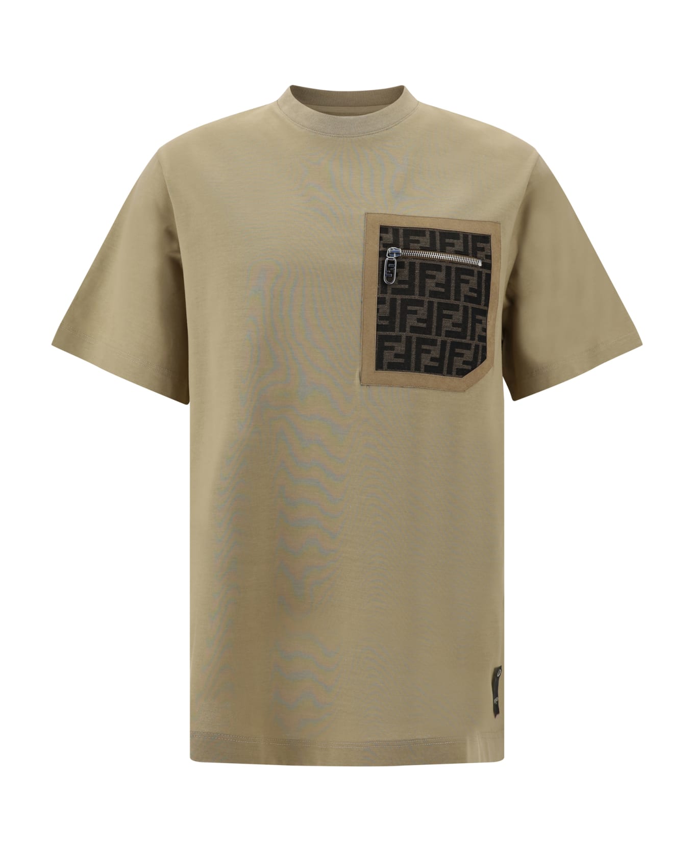 Cotton t-shirt by fendi, ribbed crew neck, pocket with brand's iconic ff contrasting pattern and zipper for closure, monochrome pattern, regular fit. Composition: 100% % Cotton