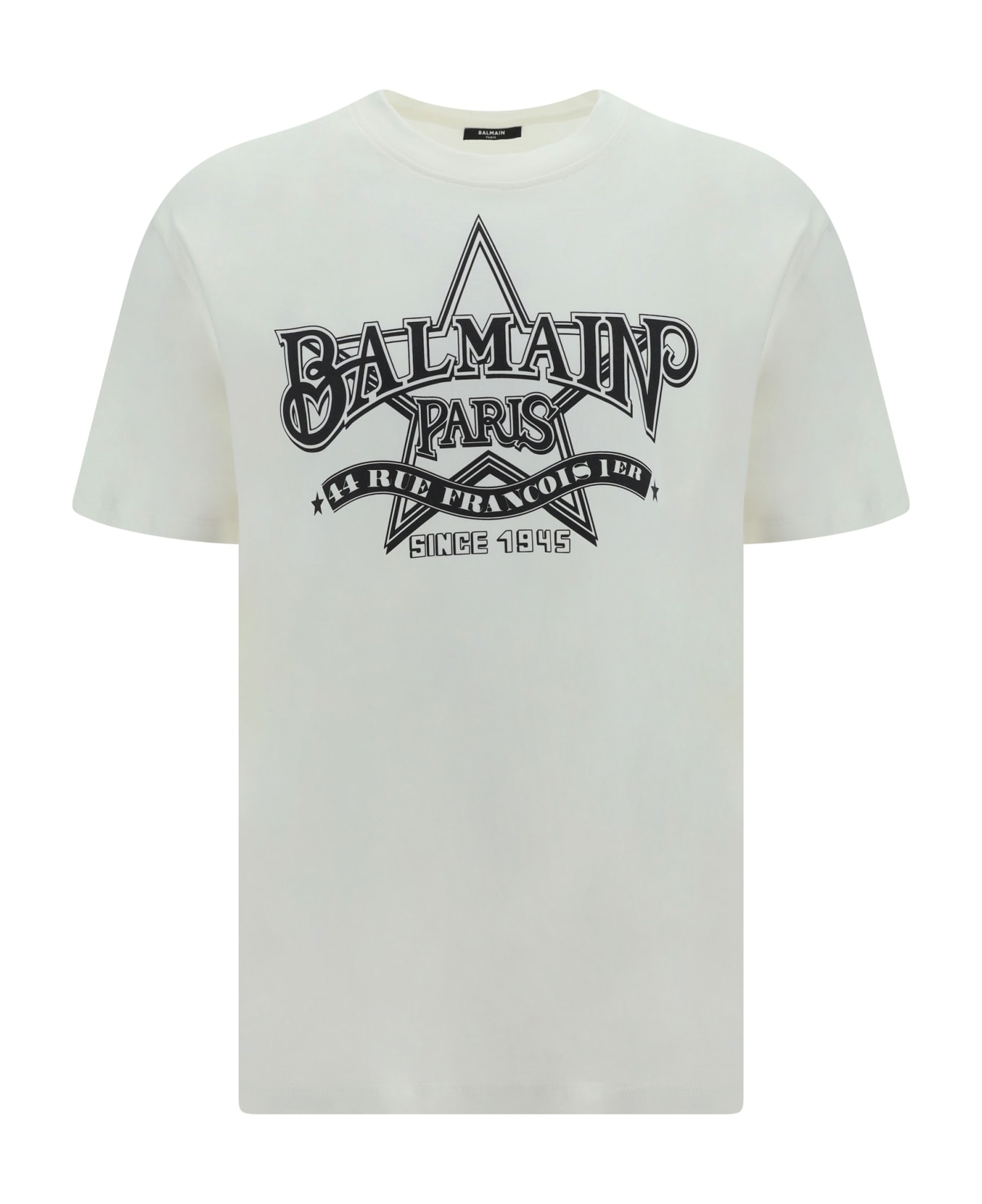 Cotton t-shirt by balmain, ribbed crew neck, iconic brand monogram printed in contrast on front, monochrome pattern, regular fit.