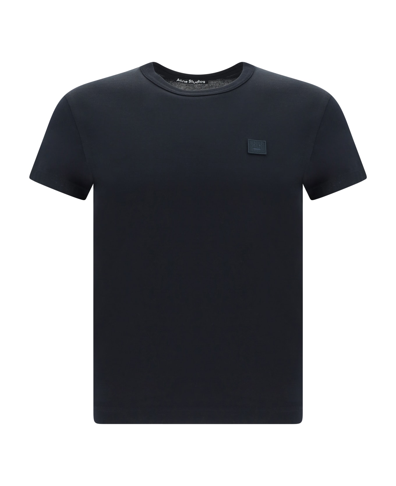 Cotton t-shirt by acne studios, ribbed crew neck, iconic brand logo applique on front, slim fit.