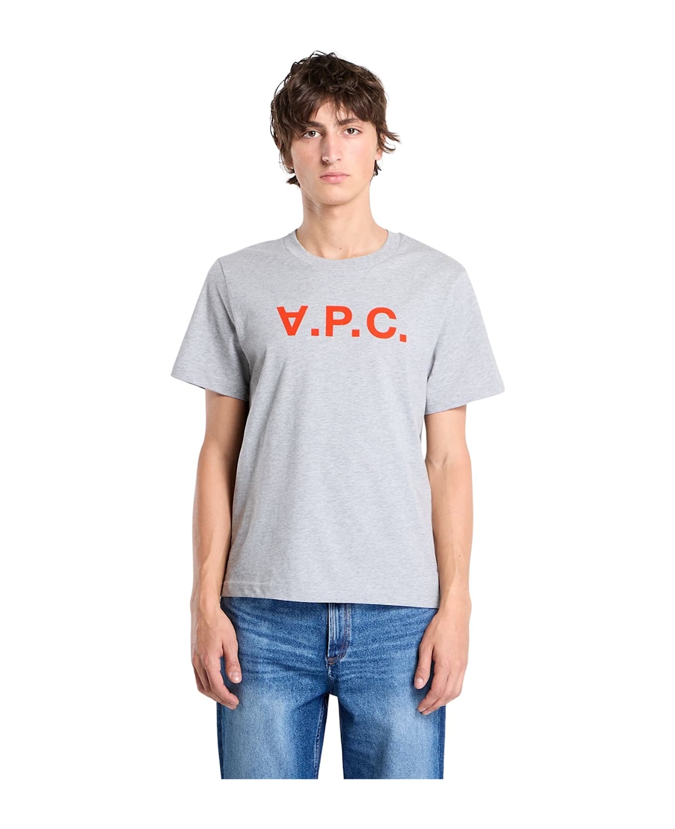 A. P. C. T-shirt, this A. P. C. combines comfort and style thanks to the 100% organic cotton fabric. The Gris Chine color with the red embroidered logo V. P. C. On the chest it gives a touch of character to the casual look.
