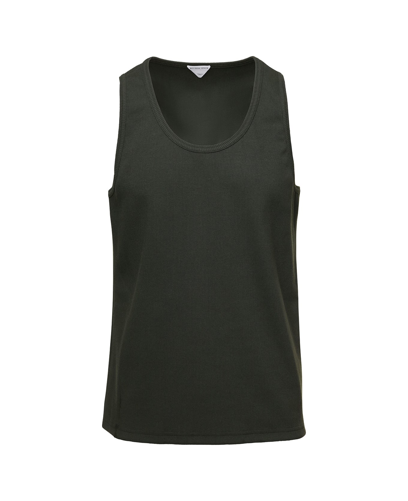 Olive Green Ribbed Tank Top With U Neckline In Stretch Cotton Man