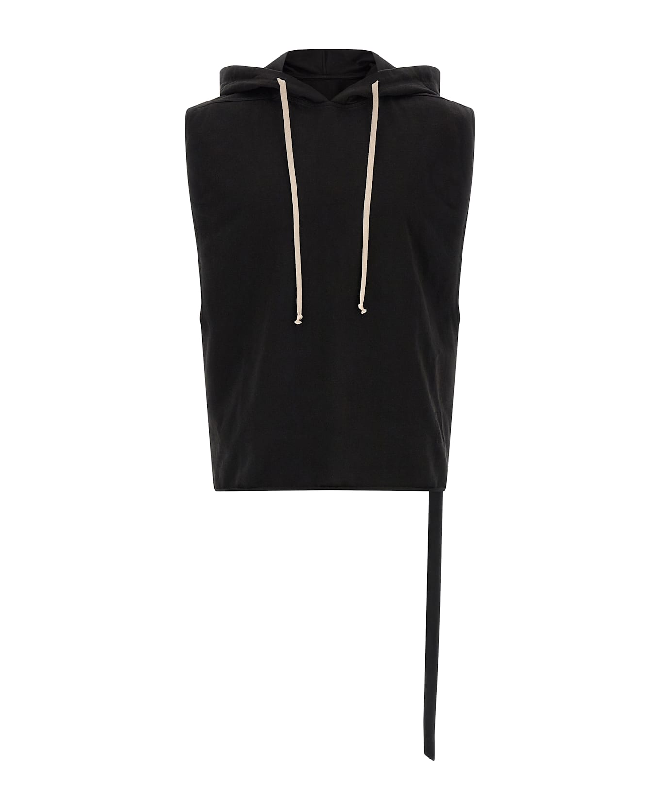 'Hooded Tunic' cotton top with adjustable hood, wide sleeve turn, raw cut hem. Composition: 100% cotton