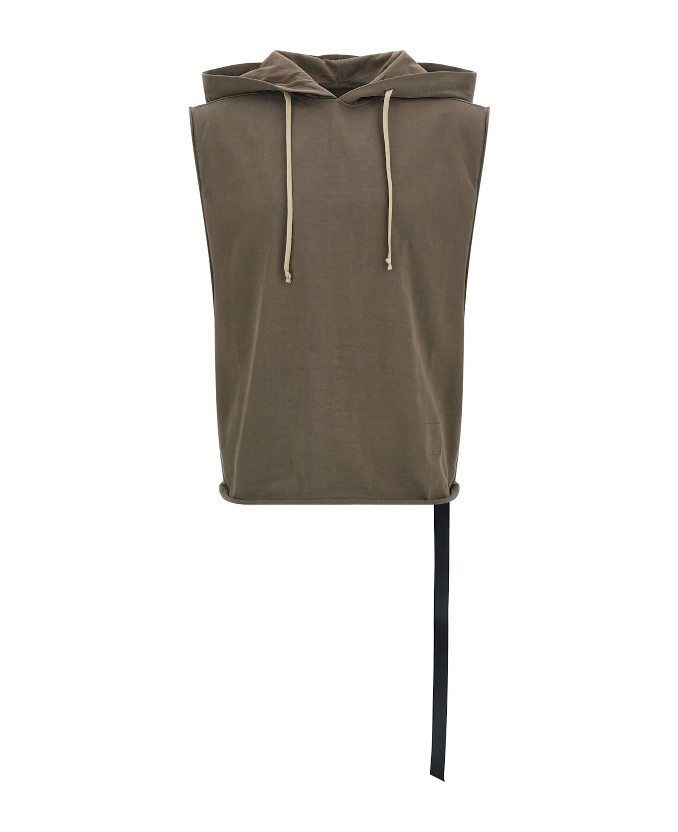 'Hooded Tunic' cotton top with adjustable hood, wide sleeve turn, raw cut hem. Composition: 100% cotton