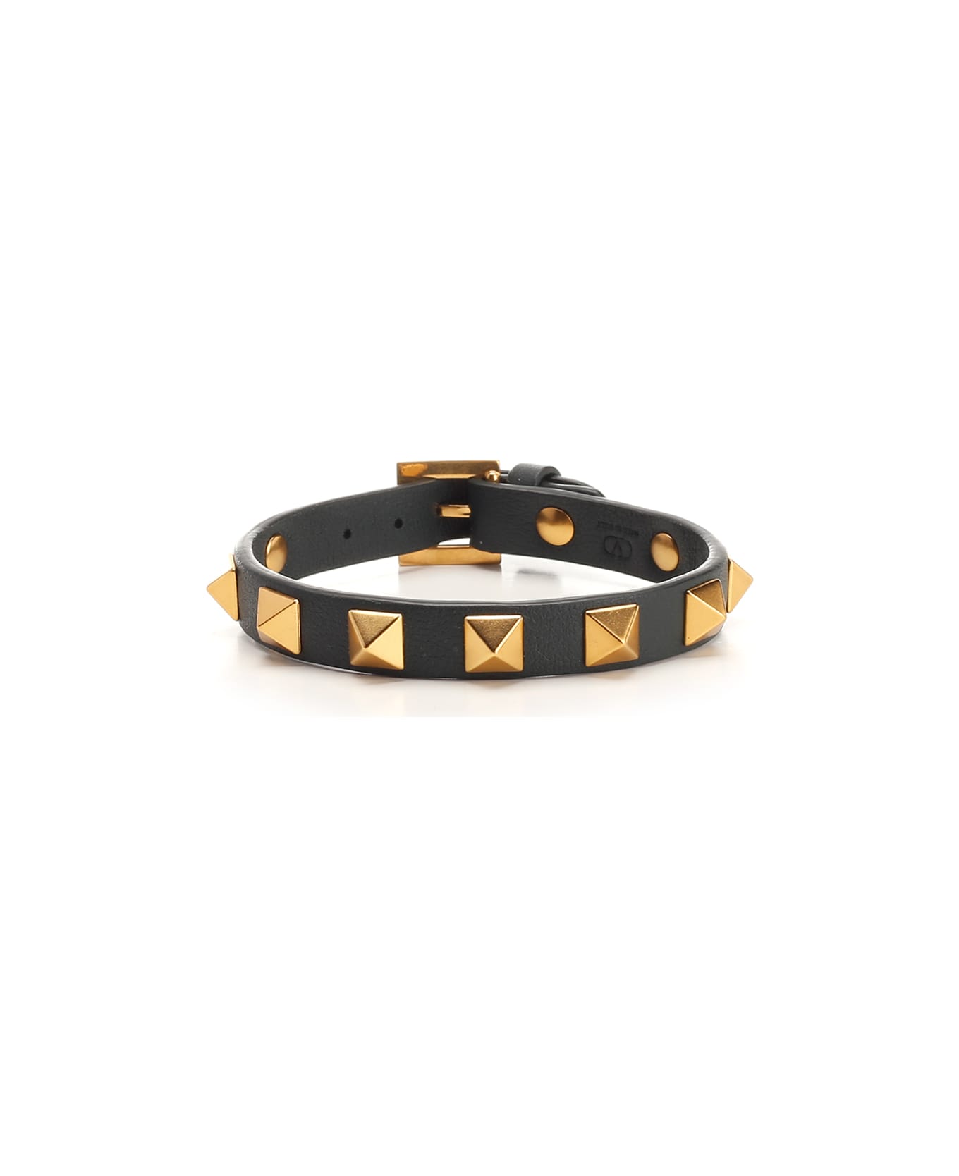 Black "Rockstud" bracelet from Valentino Garavani in leather, golden studs with square shape. Composition: O 100%CALF LEATHER - BOS TAURUS