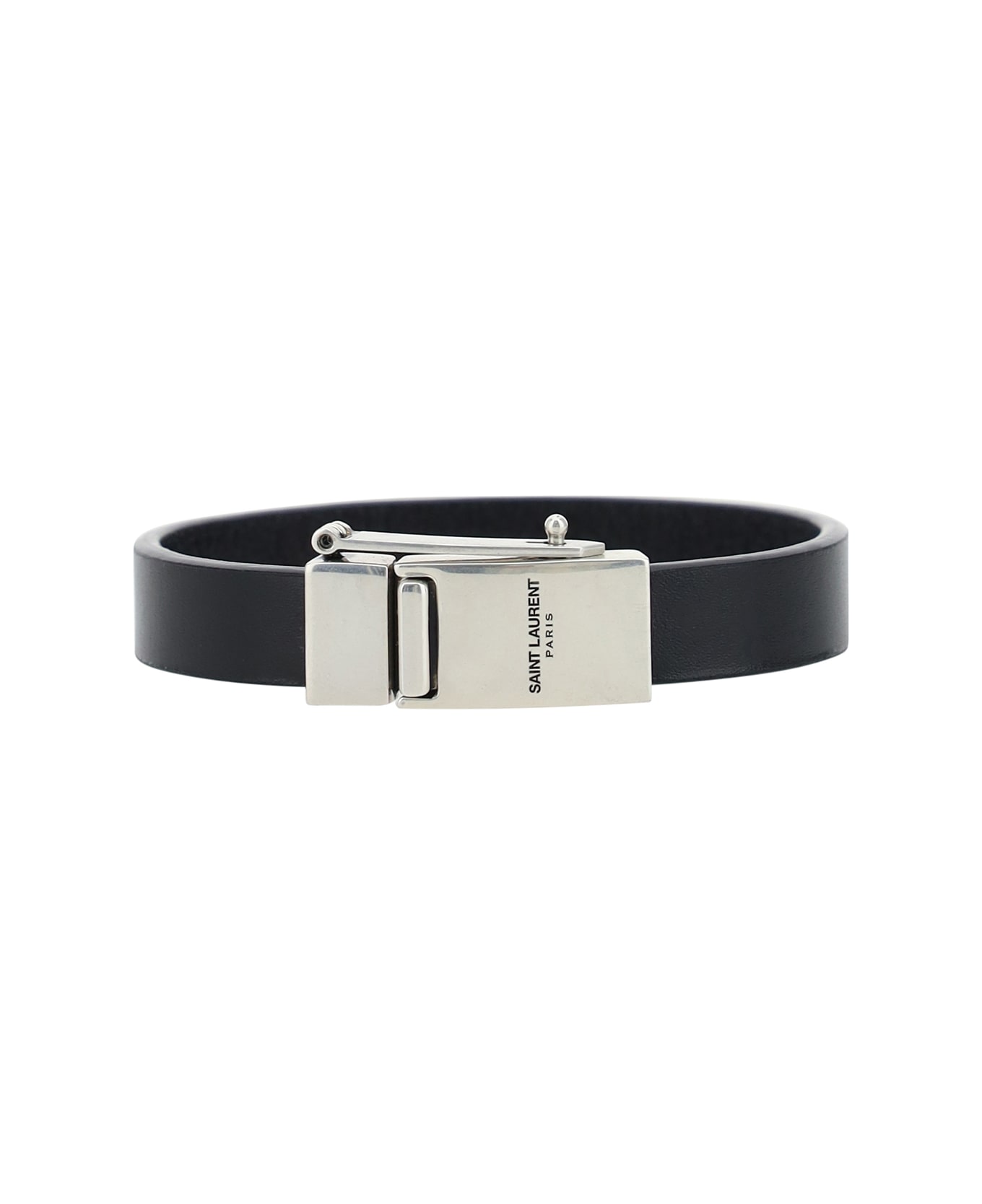 Calfskin ysl bracelet by saint laurent, iconic brand monogram engraved on metal front. Composition: 100% % Calf Leather Bos Taurus
