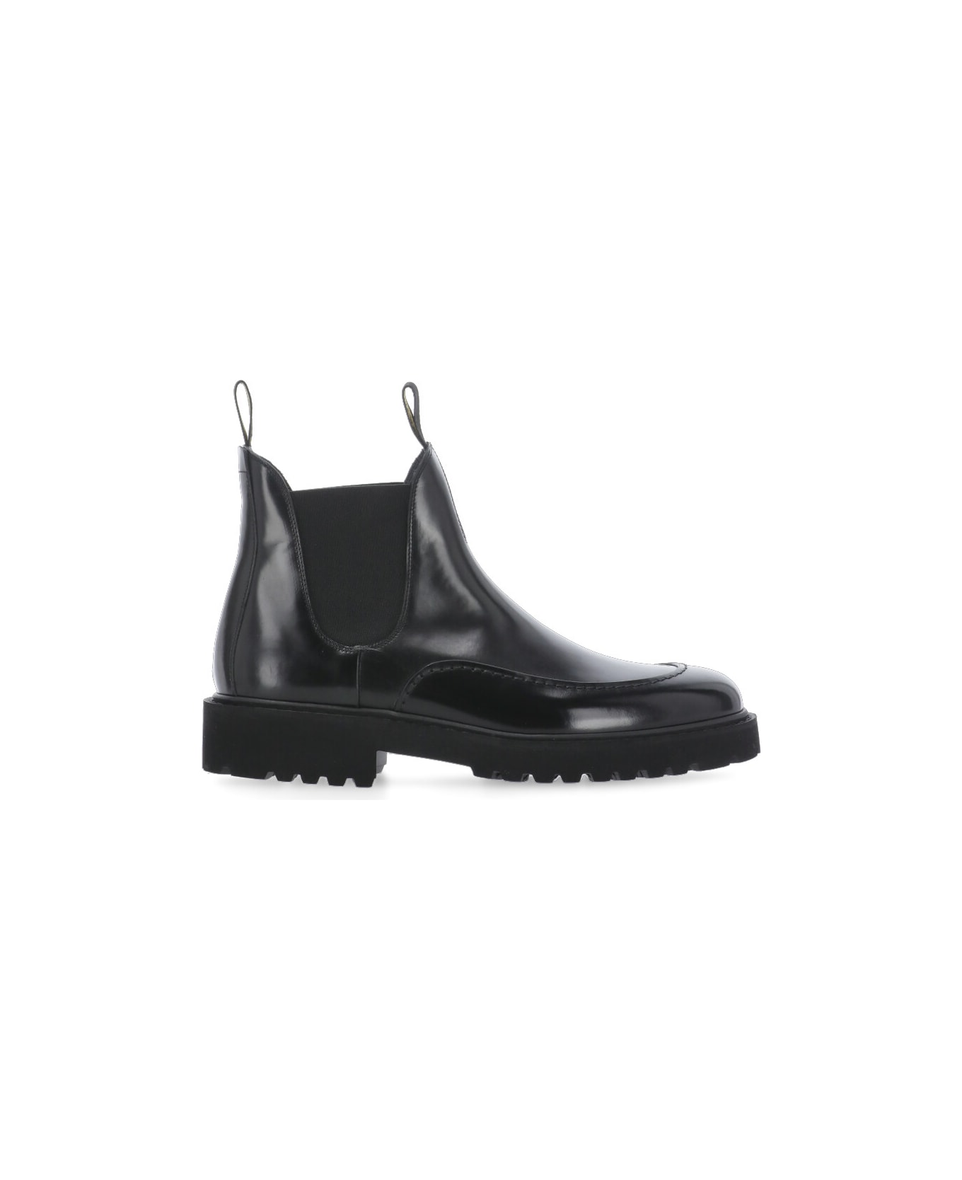 - Black Doucal's leather Chelsea boots for man - Round toe - Side elastic inserts - Raised rubber sole (4 cm) - Front and rear logoed tab