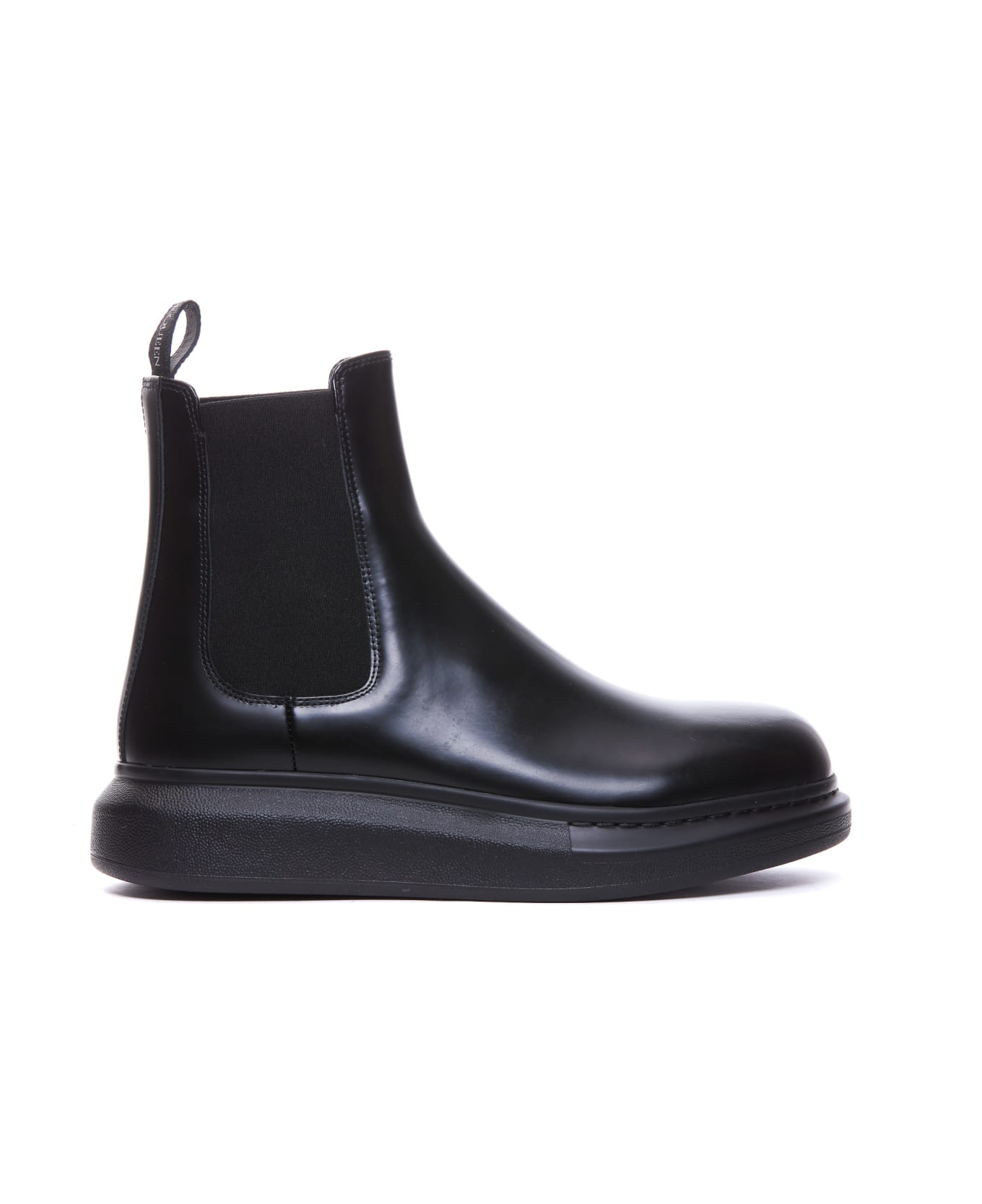 Alexander Mcqueen black Hybrid Chelsea boots, leather upper, fabric detail on side, round toe Composition: 100% Leather, Rubber Sole