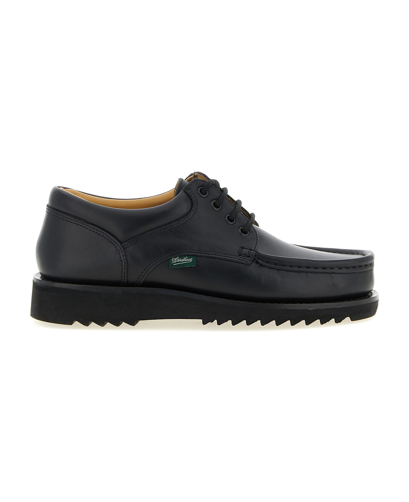 Thiers' leather derby shoes with traditional shape with slightly short, rounded toe, padded collar, Blake stitching, leather lining, laces and rubber sole. Paraboot products undergo treatments that preserve the authenticity and freshness of the leather, patina may form when not in use, just remove it with a damp cloth.