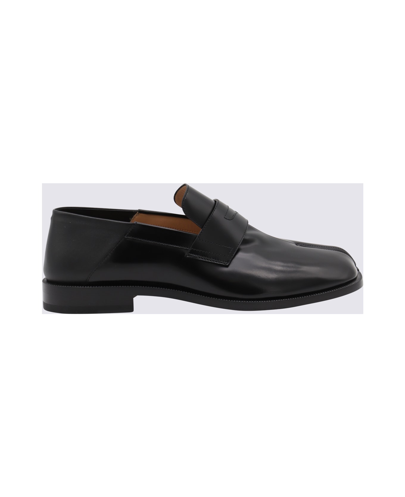 Black leather Tabi Babouche loafers from Maison Margiela featuring Tabi toe, square heel, slip-on style and leather sole. Composition: _cover, 100% Le ;sole, 100% Le