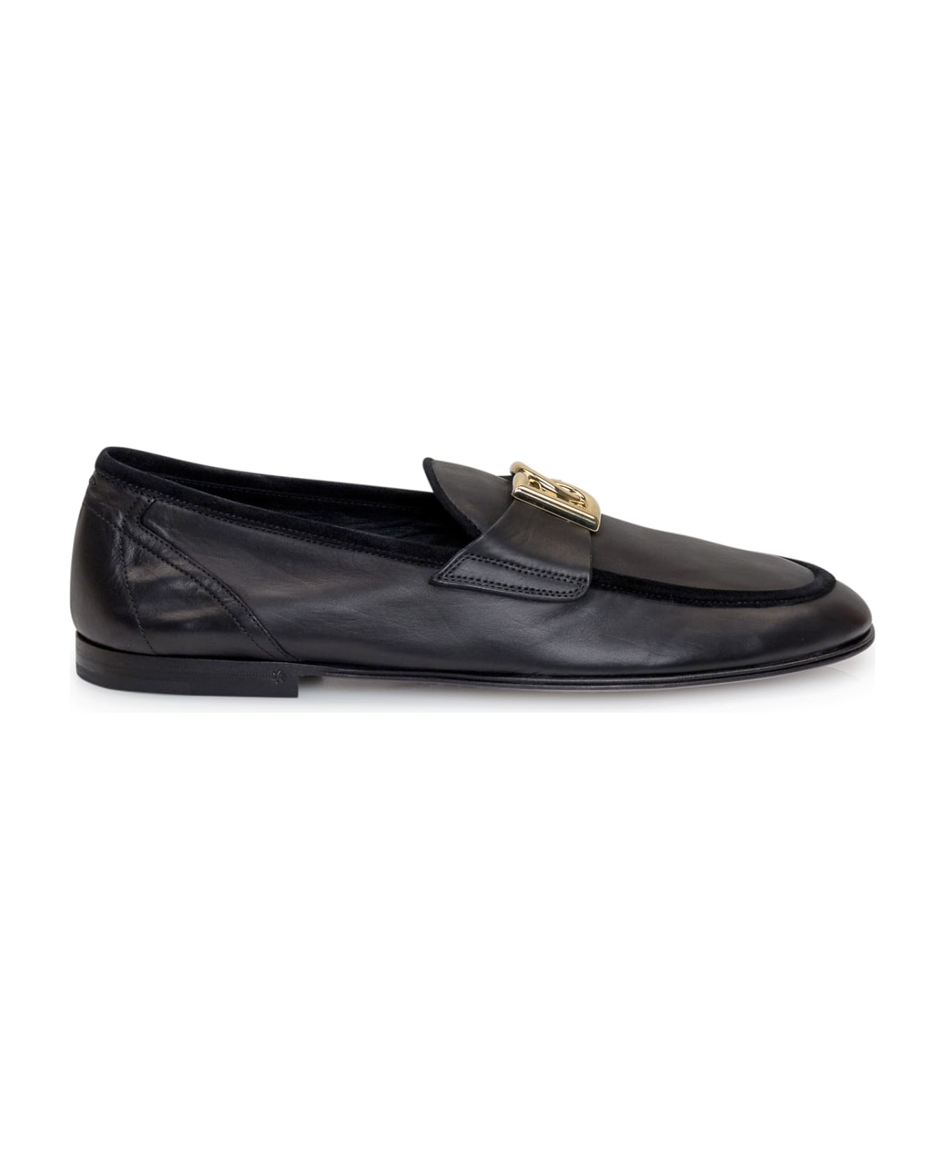 Black slip-on loafer. Golden metal logo on the front. Composition: Outside:, 100% Leatherlining:, 100% Leathersole:, 100% Leather