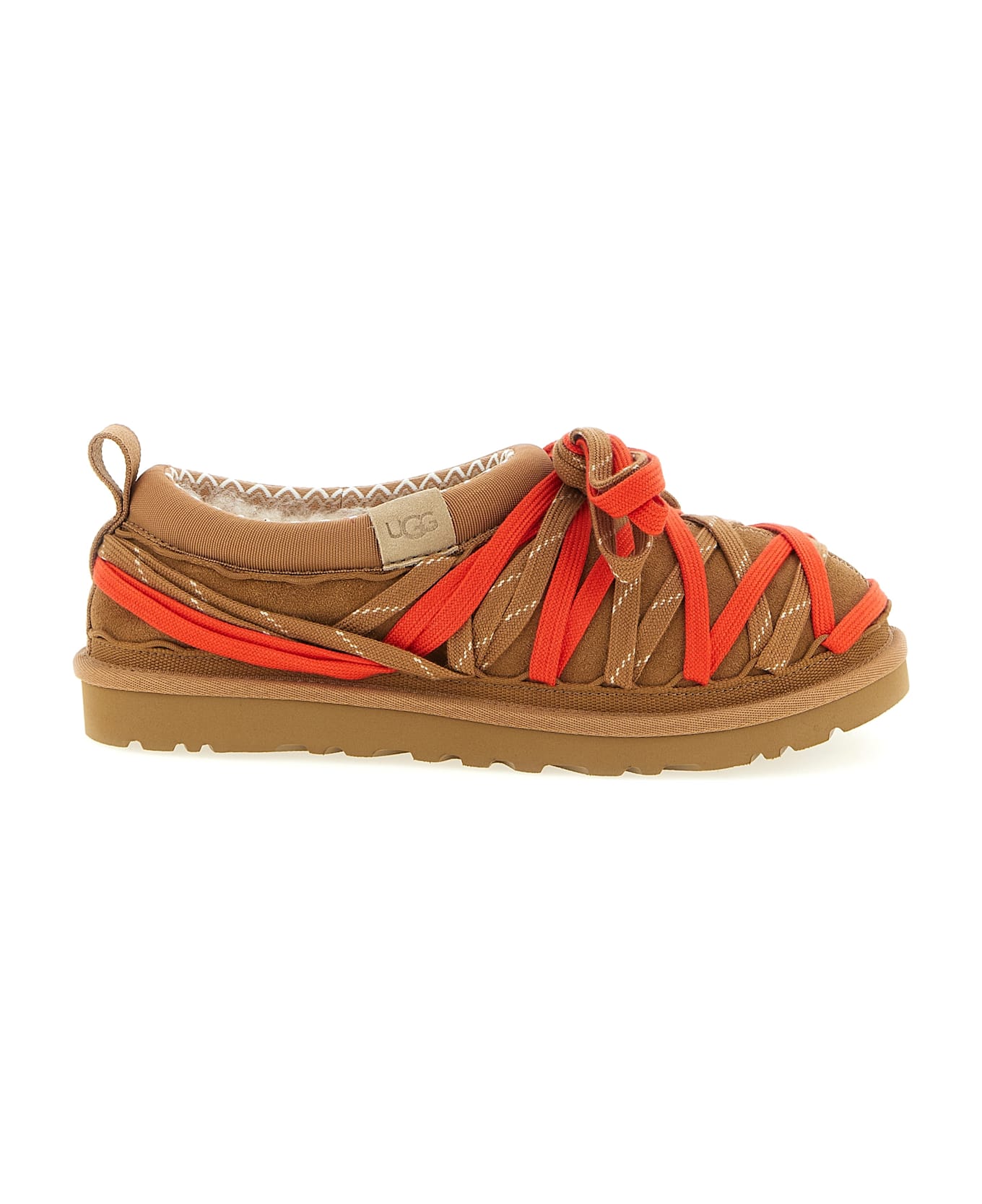 'Tasman Lace' suede mules with double lacing, padded collar with UGGbraid and embossed logo patch, sheepskin lining and insole, foam inner sole, EVA sole from sugar cane. You can fasten and wear it in many different ways.