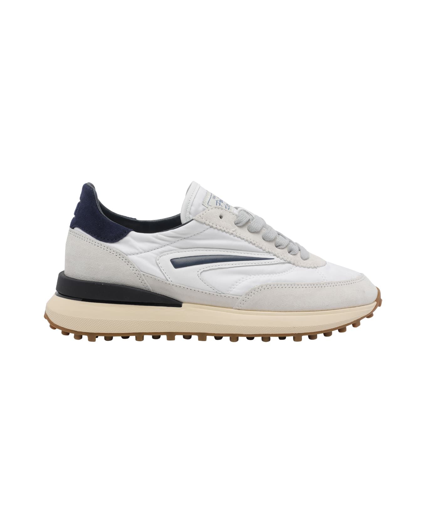 D. A. T. E white Athleta sneakers, round toe, suede and fabric upper, laces closure