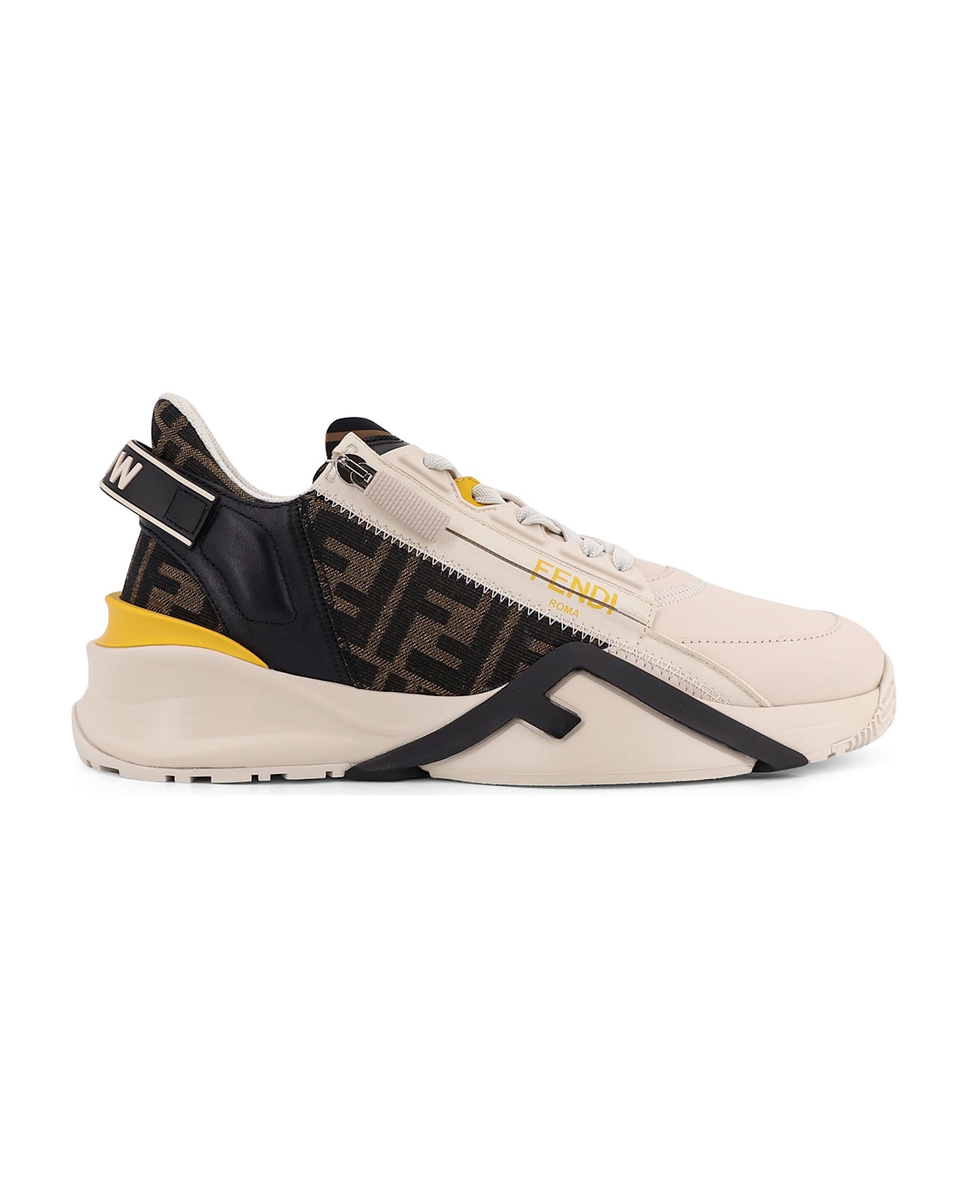 Elastic laces, side zip Wavy sole with carved F Embossed Fendi Flow lettering Jacquard FF details Made in Italy Leather/65% polyamide 35% cotton Rubber sole with diagonal F detail SKU: 7E1392AJZHF1HGR
