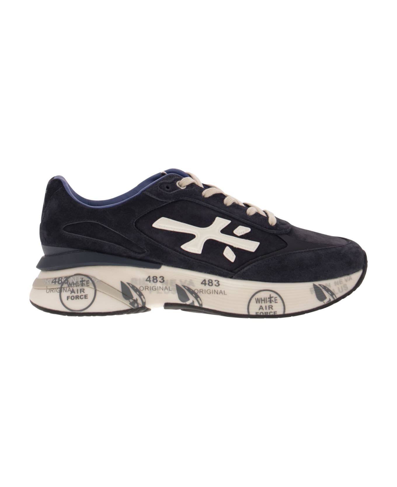 The Moe run is based on lightness of movement, stability and the cushioning sensation provided by the innovative bottom. The new silhouette is rich in details. - Logo on the outer side - PREMIATA lettering on the inner side - Model name on label DESIGNER ID: MOERUN 6449