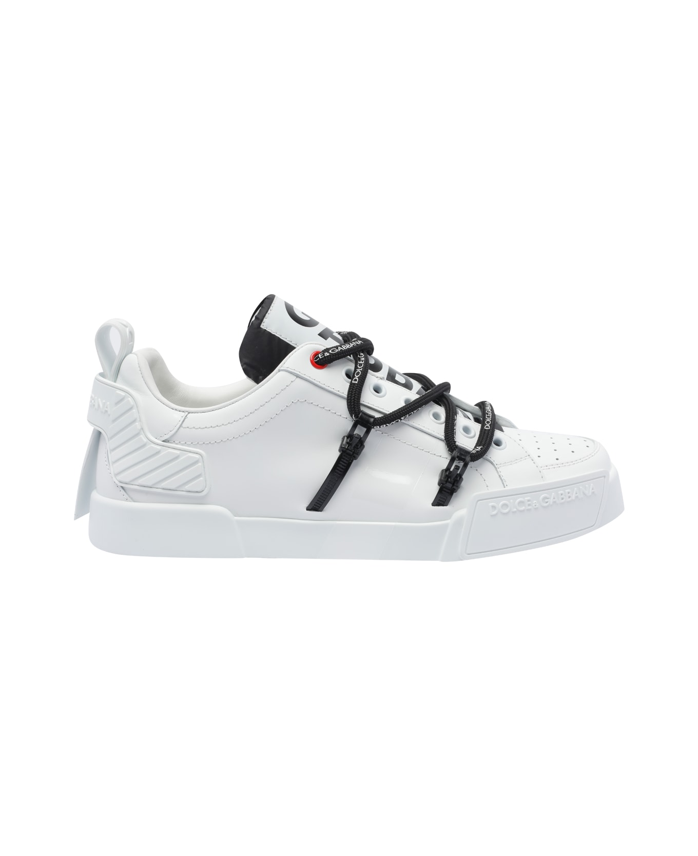 Dolce&Gabbana white Portofino sneakers, round toe, leather upper, logo on shoes' tongue, laces closure Composition: 100% Calf Leather/rubber Sole