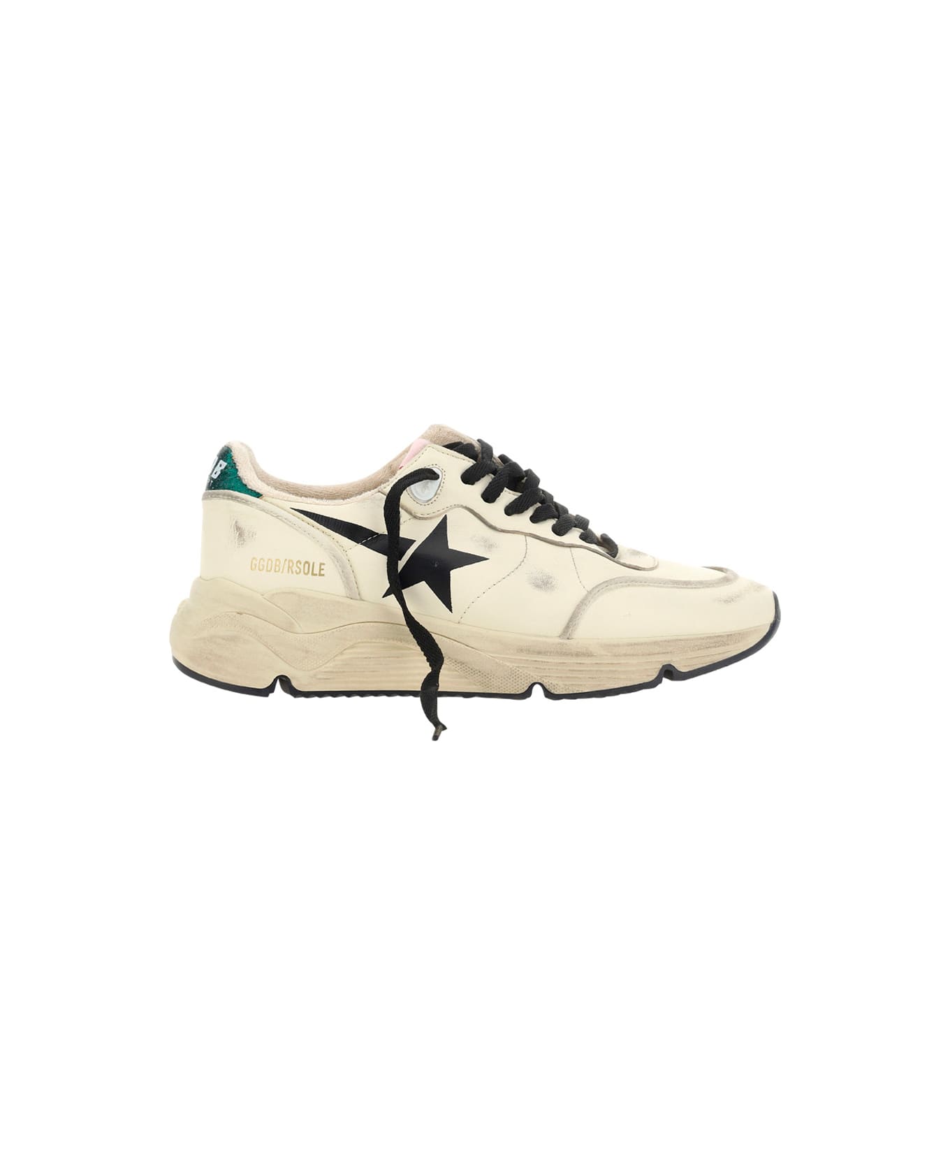 Calfskin rsole full quarter sneakers by golden goose, textured rubber sole, front lace-up closure, iconic brand star on contrasting side panel, round toe, iconic brand monogram press-stamped on outer side panel, press-stamped brand logo on front tab.