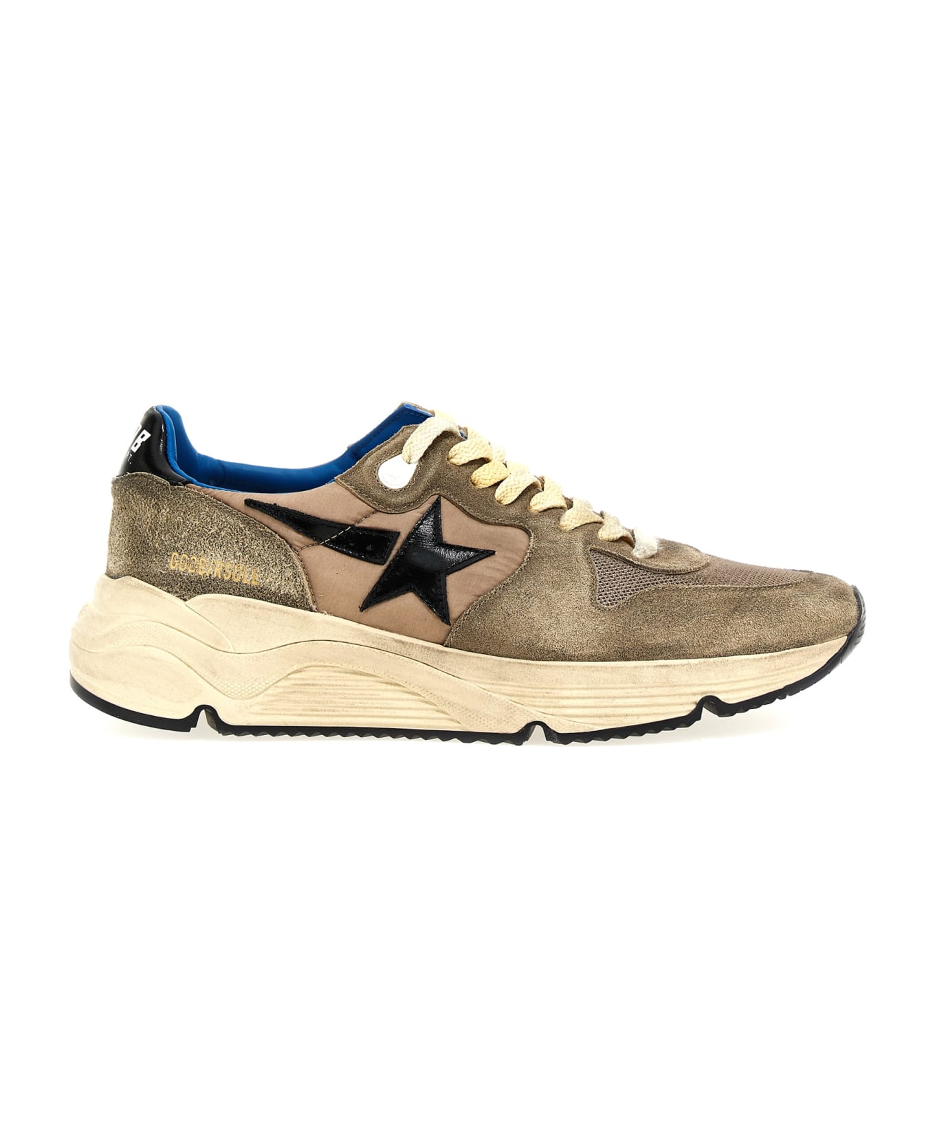 'Running Sole' sneakers in suede, nylon and leather with laces, rubber sole, used-effect details.