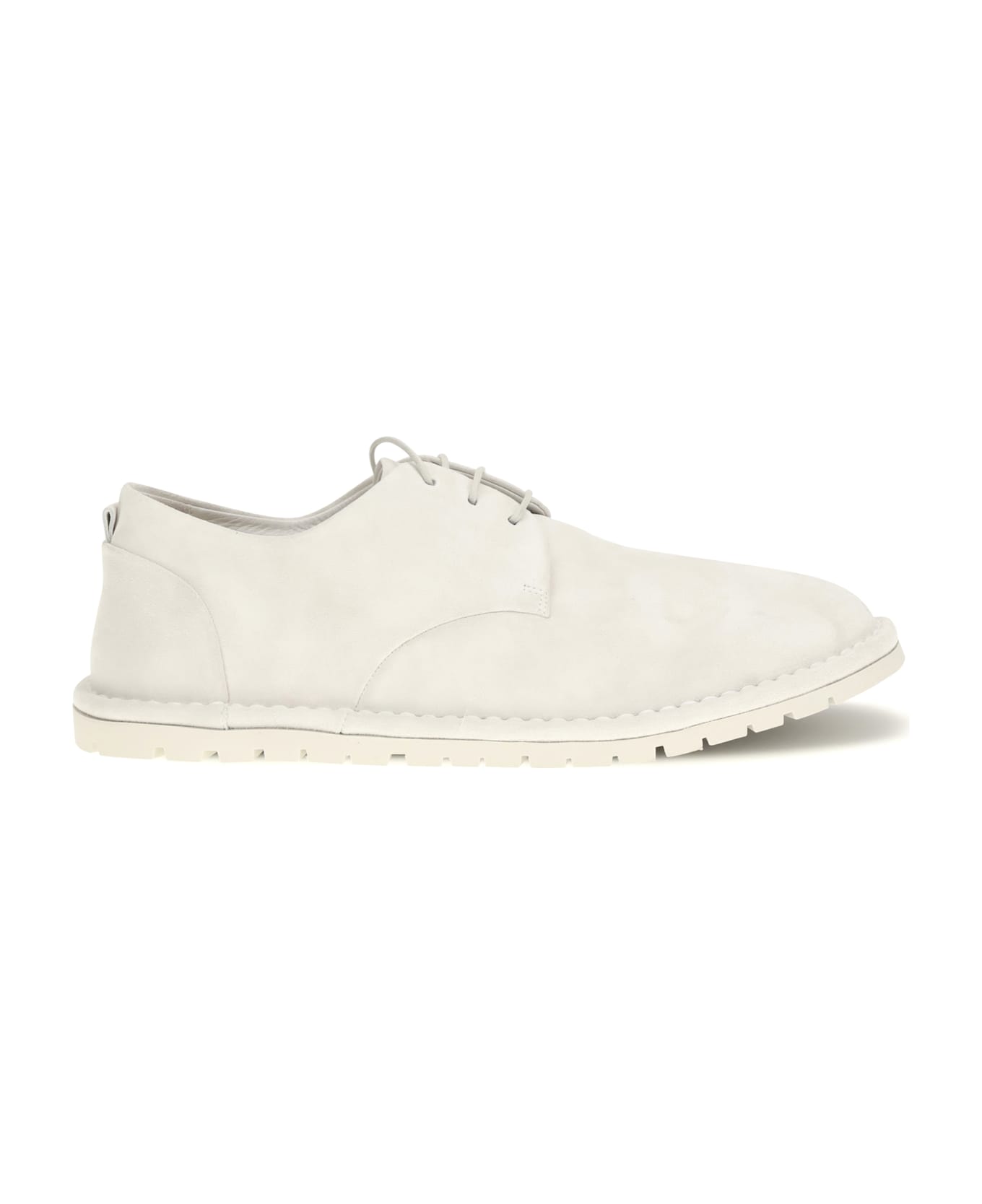 The sancrispa lace-up shoes by marsèll are made of suede and enhanced by san crispino's technique, highlighted by the delicate stitching around the edge that underscores the craftsmanship. the minimalist upper design rests on a rubber sole, ensuring comfort and flexibility in every step.