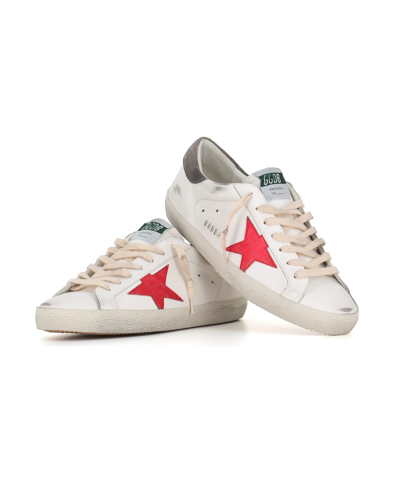 White leather Sneaker from Golden Goose, featuring by a 2 cm insole. Leather red star and grey suede heel tab. Rubber sole. Heel: 2,5 cm Composition: Leather