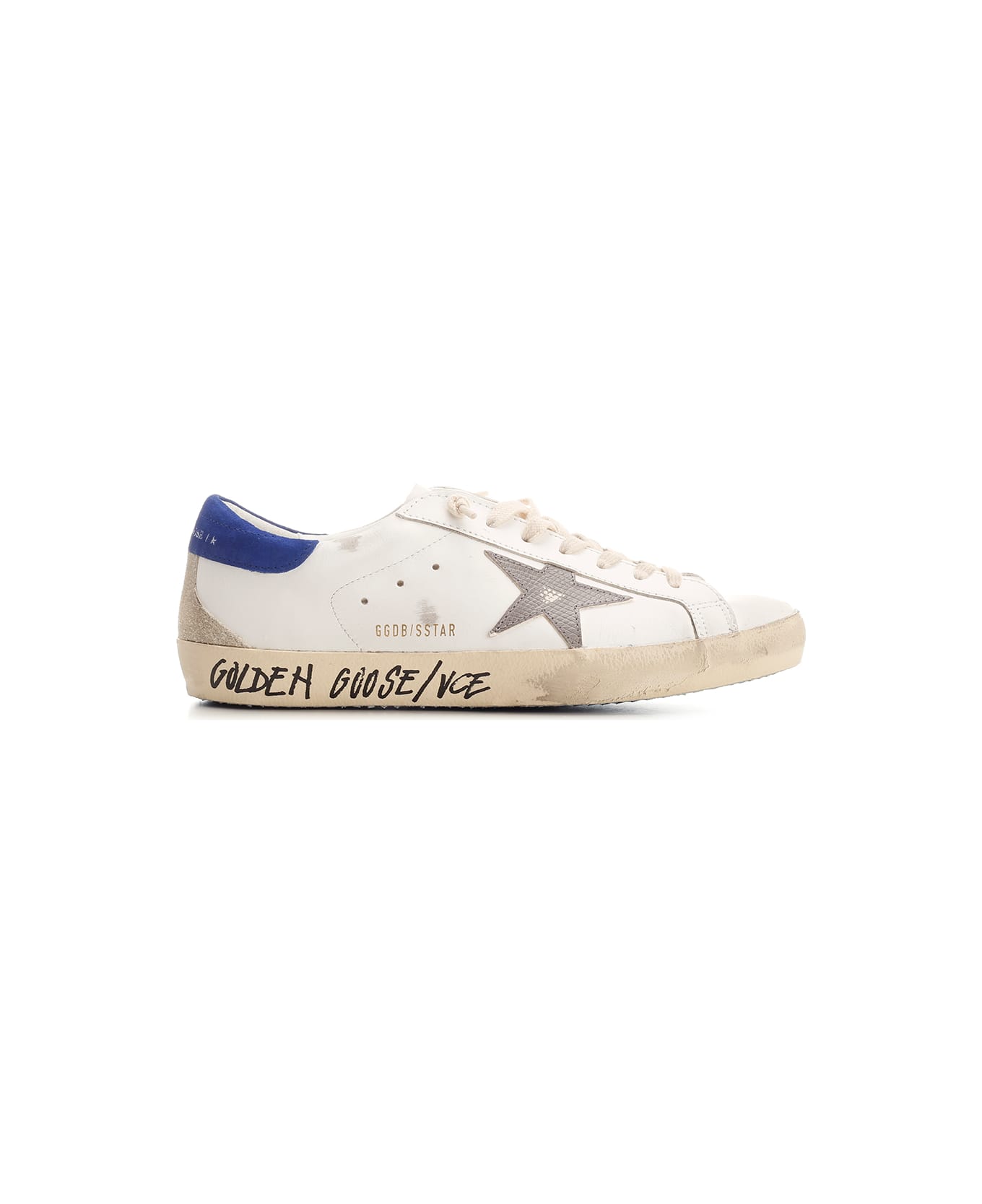 Golden Goose "Super Star" sneakers in vintage effect white leather, with blue heel
