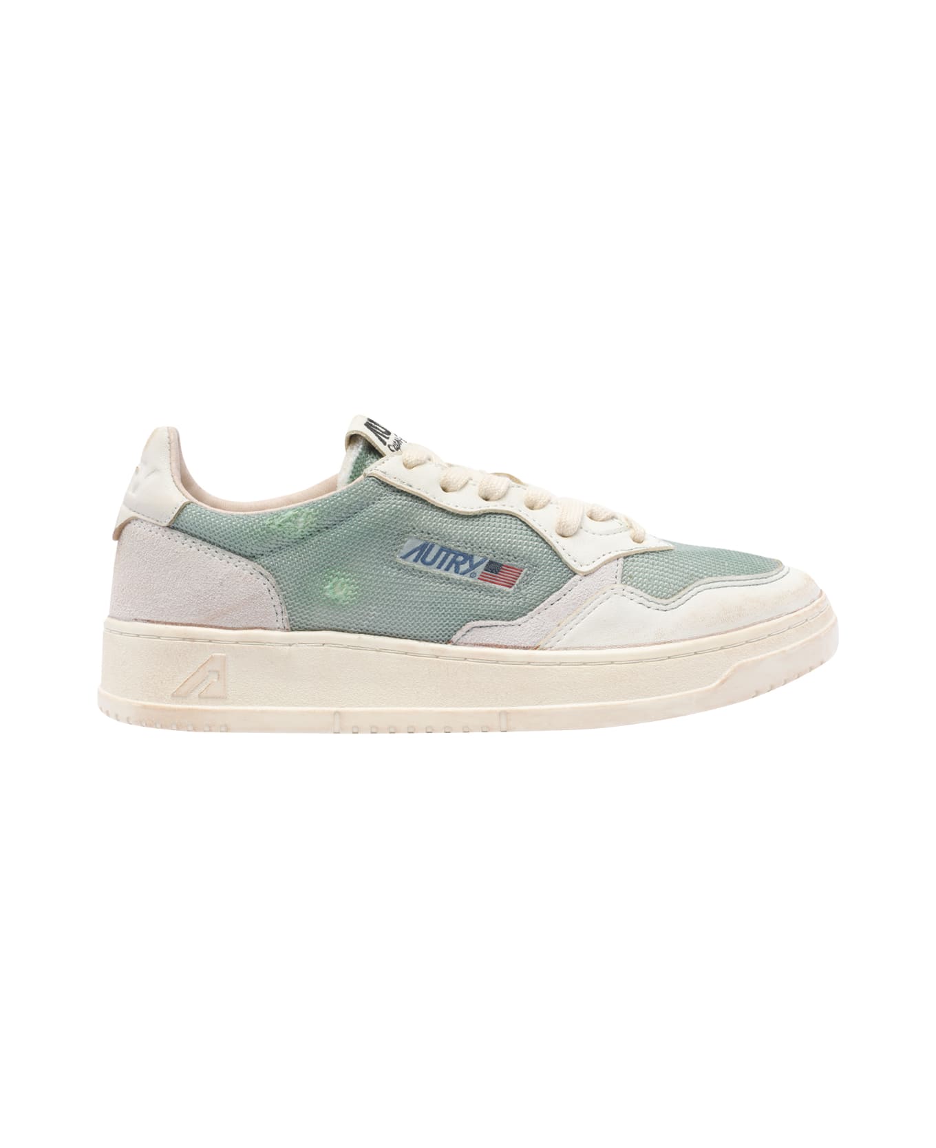 Autry white and green Super Vintage sneakers, laces closure, round toe, leather upper, logo