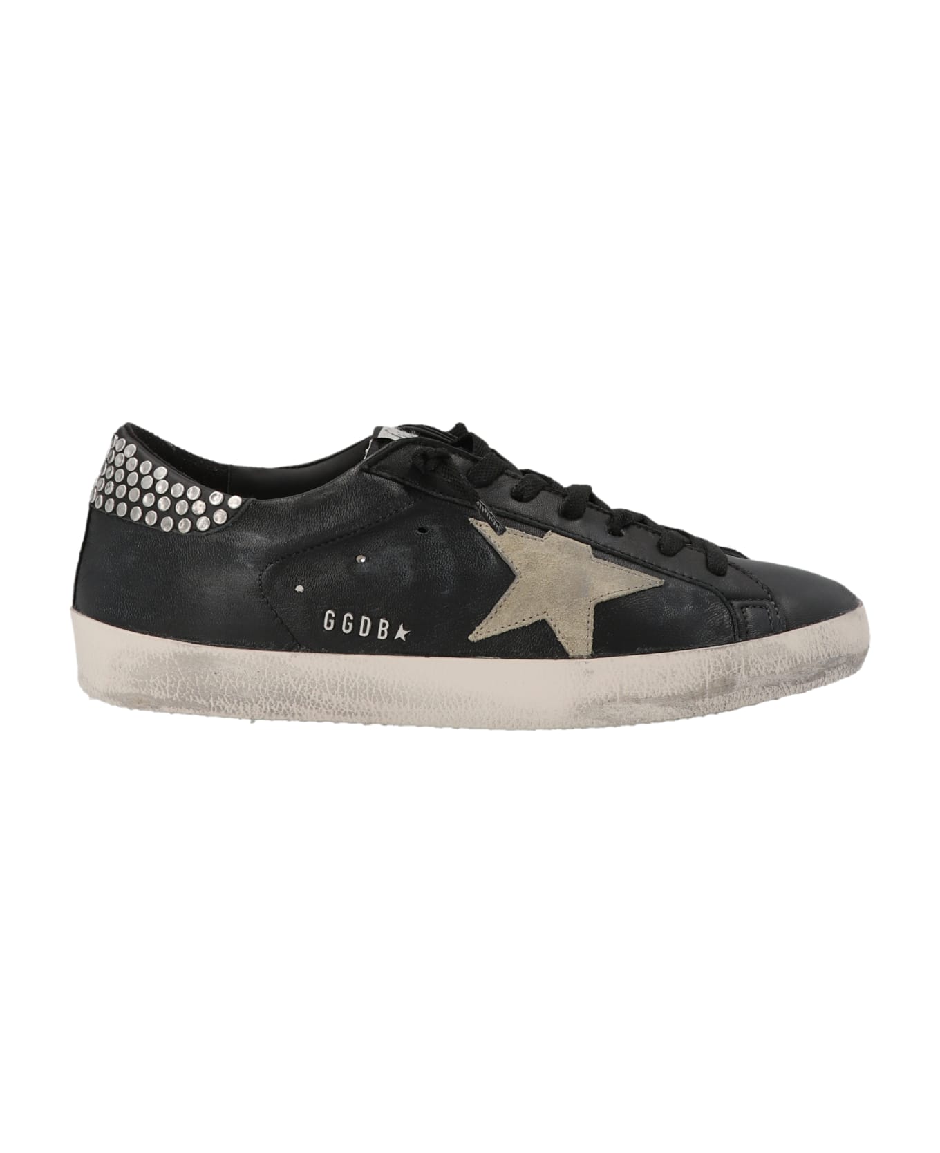 'Superstar' leather lace-up sneakers with used-effect detail, contrast star at the side, studs on the heel, rubber sole.