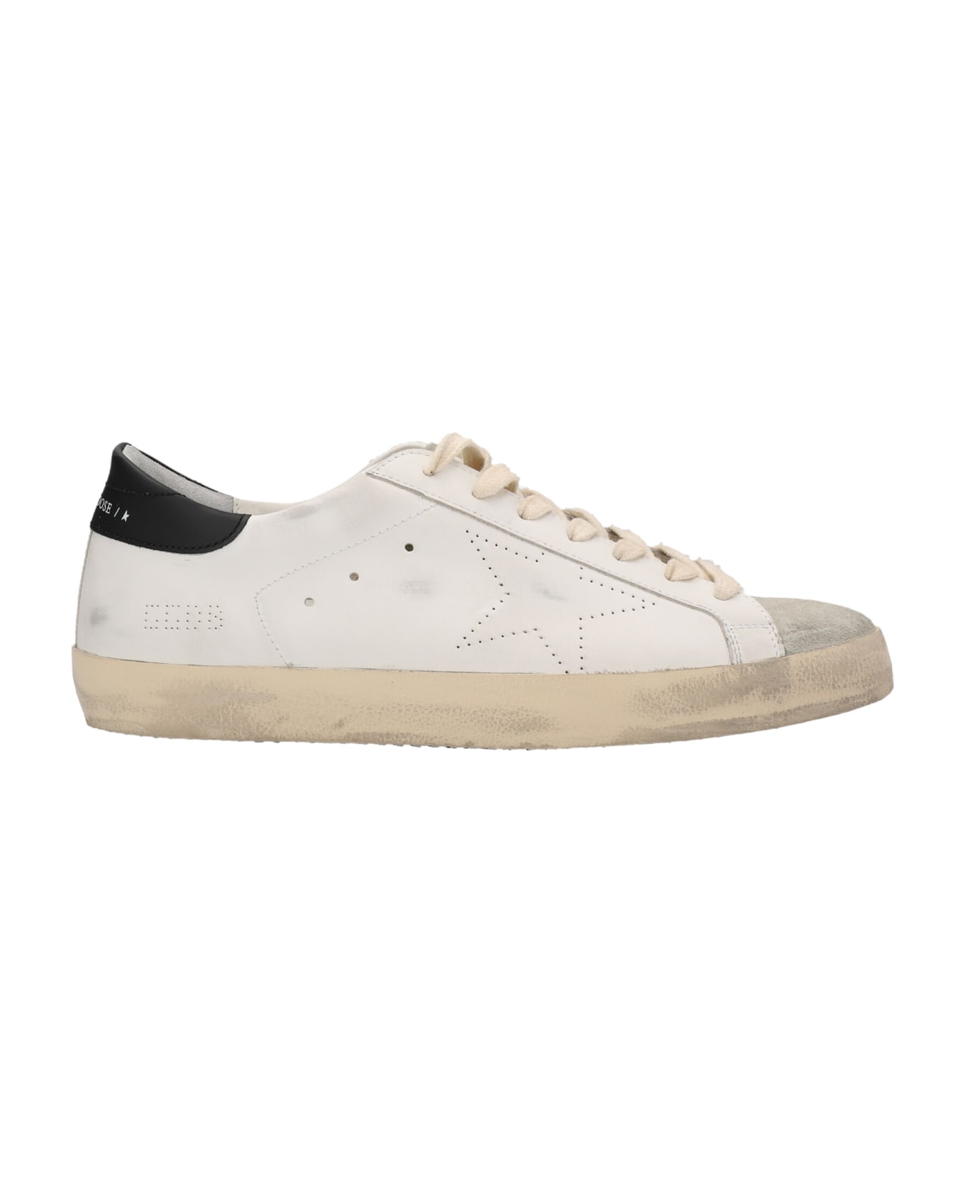 'Superstar leather sneakers with contrasting suede detailing, laces, and a rubber sole.