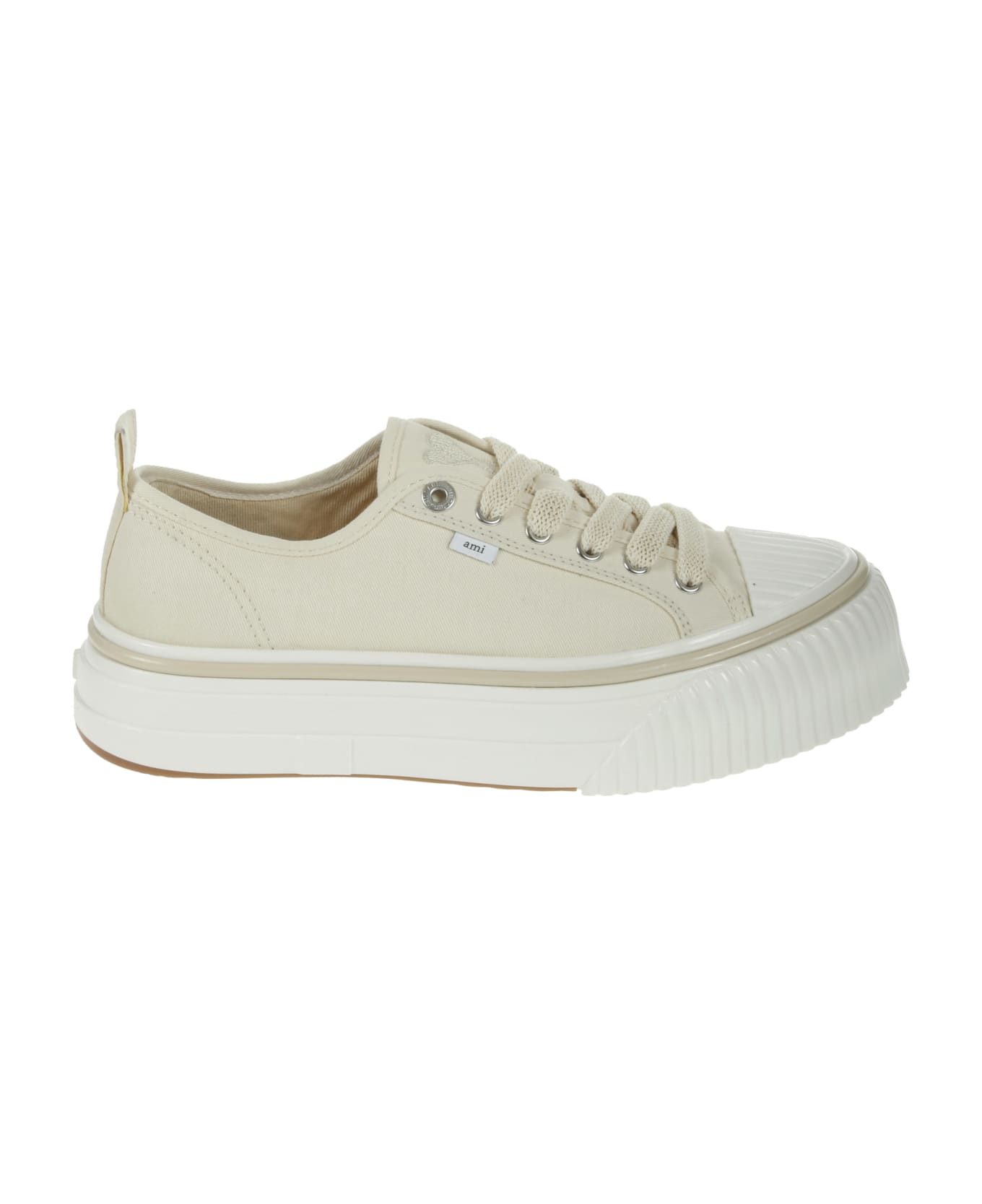 AMI Sneaker in cream canvas, white rubber sole, rubber toe, logo detail on the tongue. Composition: 100% Cotton