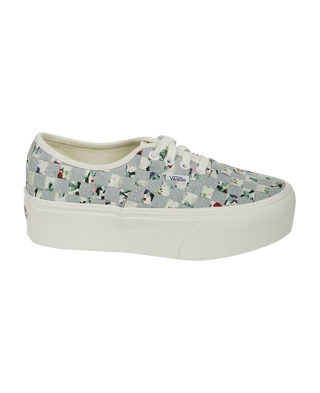 Vans Light blue canvas sneaker, floral pattern, white stitching, white laces, rubber platform sole, logo detail. Composition: 100% Canvas
