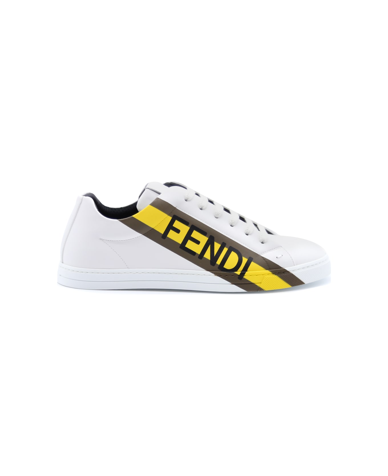 Wihite/black/yellow White Leather Sneakers With Logo Print from Fendi