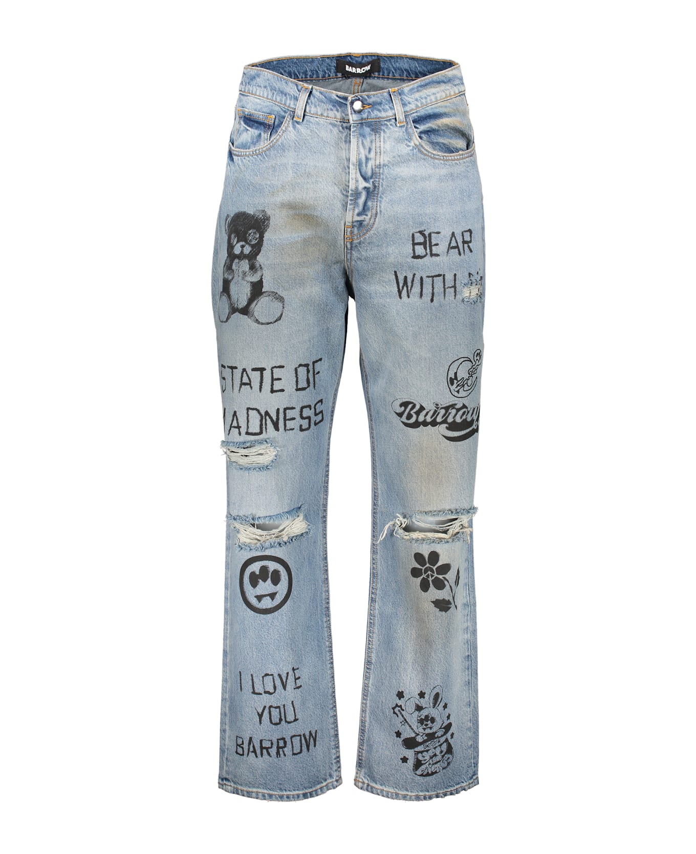 Light jeans, characterized by a design with ripped details and embroidery. the fit is loose, offering comfort and style. the faded colors and unique finishes give a vintage and fashionable look, making them ideal for casual outfits. these pants are perfect for pairing with t-shirts, hoodies, or jackets for a modern and casual look.