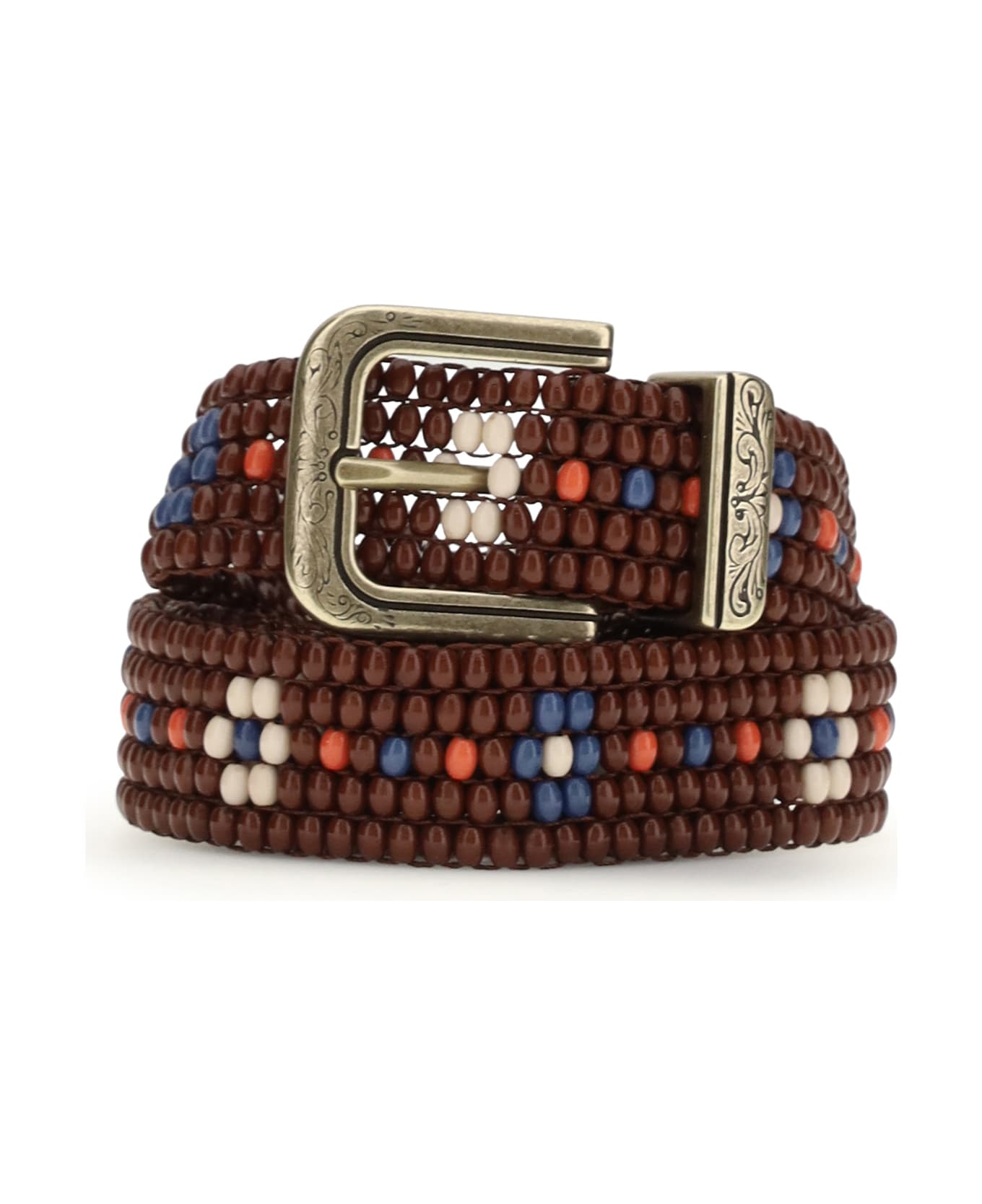 The beaded belt with floral motif by etro is a distinctive and sophisticated accessory. made entirely of embroidered solid-color beads, it features an elegant contrasting floral motif, also made with small beads. perfect for adding a touch of color and originality to any look, this belt is ideal for those seeking a unique and sophisticated detail.