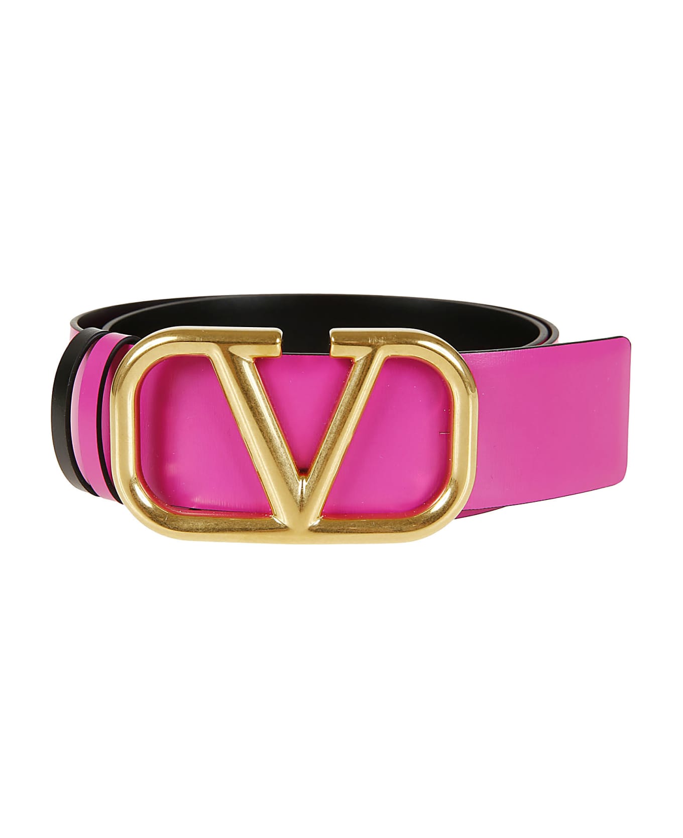 Valentino Garavani VLogo Signature reversible belt in calfskin. Featuring a VLogo Signature buckle in antique brass