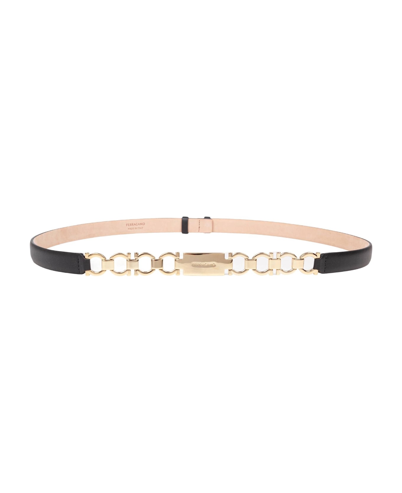 the front with gancini buckle in gold finish