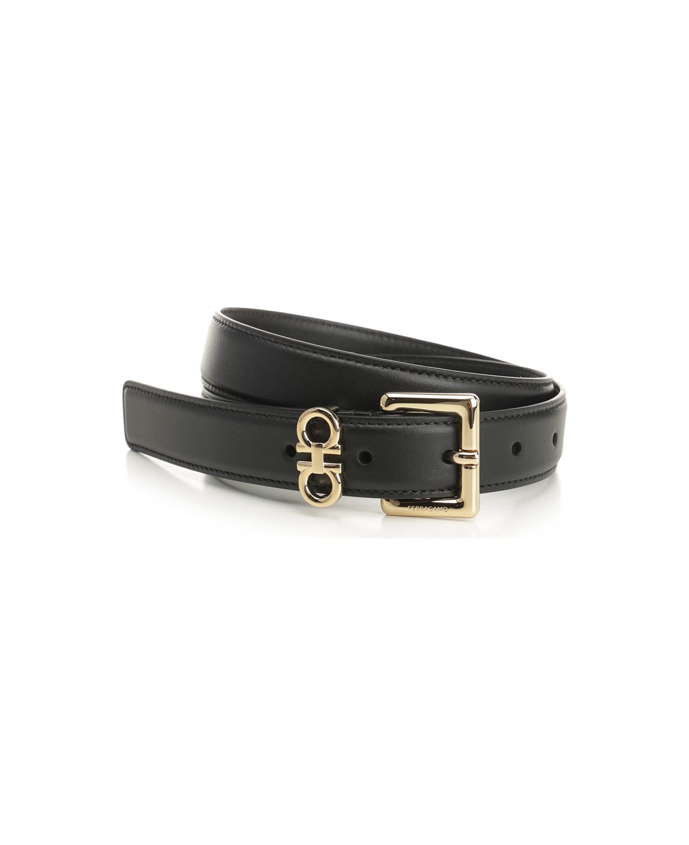 "Gancini" mini loop belt in natural grain calfskin from Ferragamo, featuring a gold-tone square buckle with rounded edges. Composition: 100%CALF 100%CALF # #