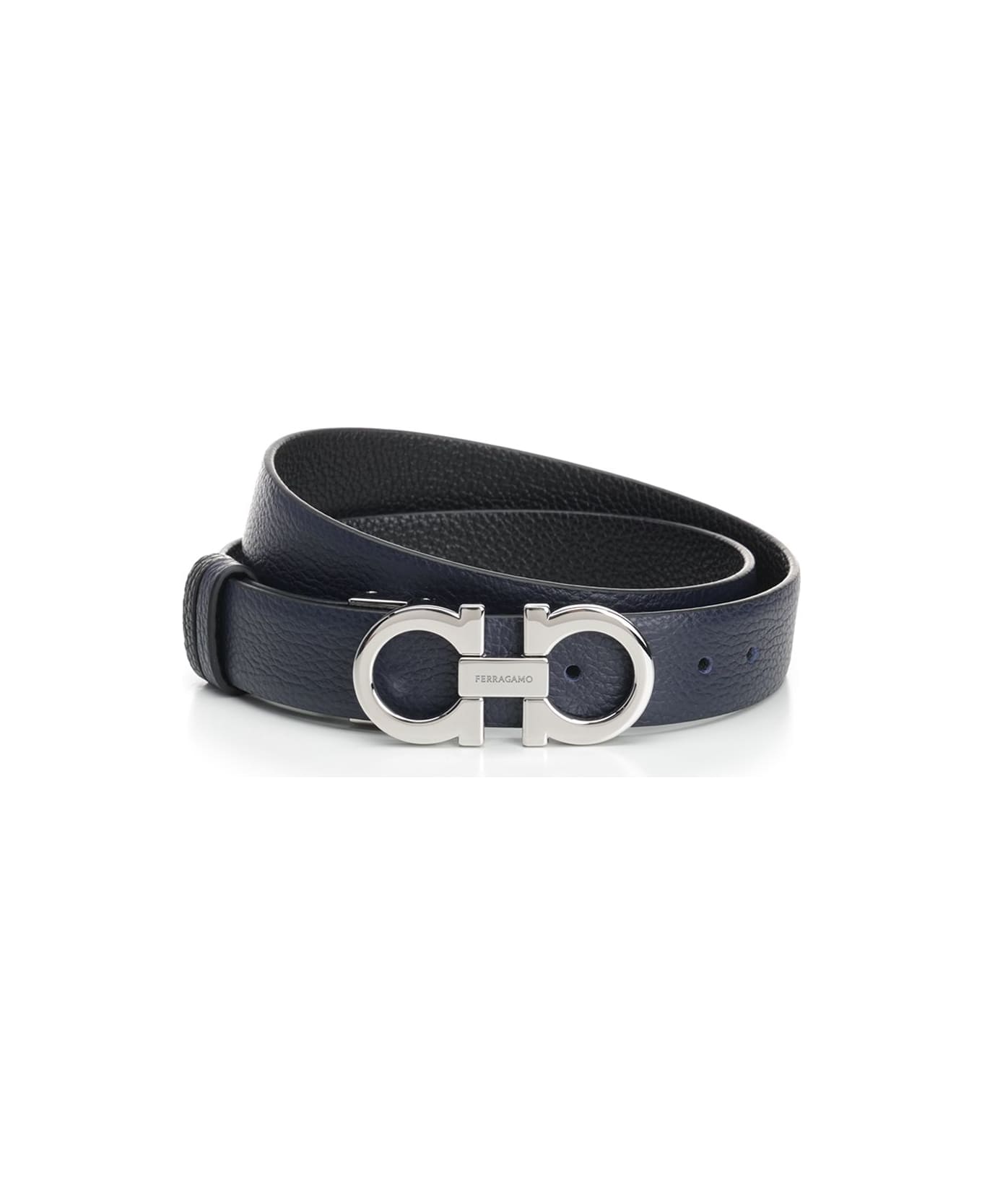Reversible and adjustable Gancini belt in calfskin from Salvatore Ferragamo, with Gancini buckle in palladium finish Composition: