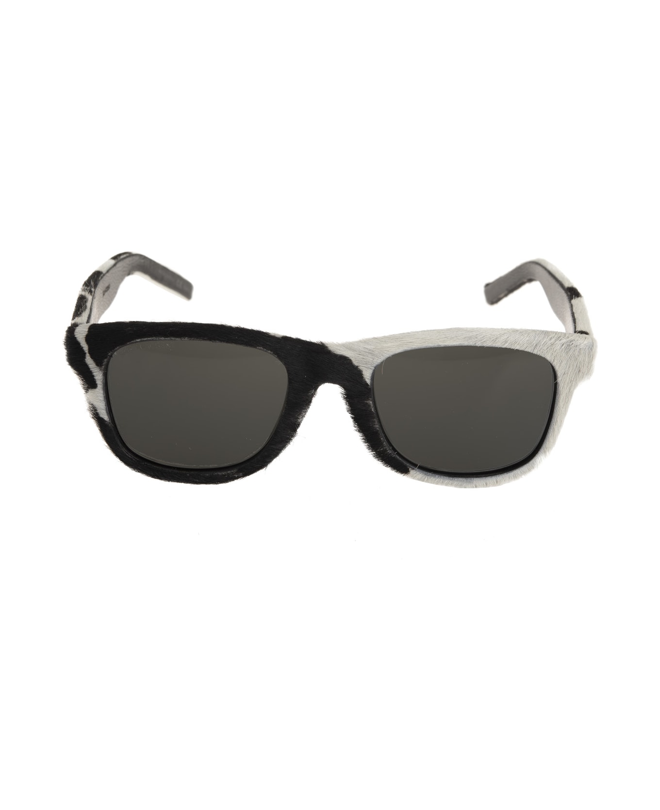CLASSIC SL 51 sunglasses by Saint Laurent covered in black and white calf hair with squared Wellington frame and black nylon lenses. 100% UVA / UVB protection. Composition: 100% Calf Hair