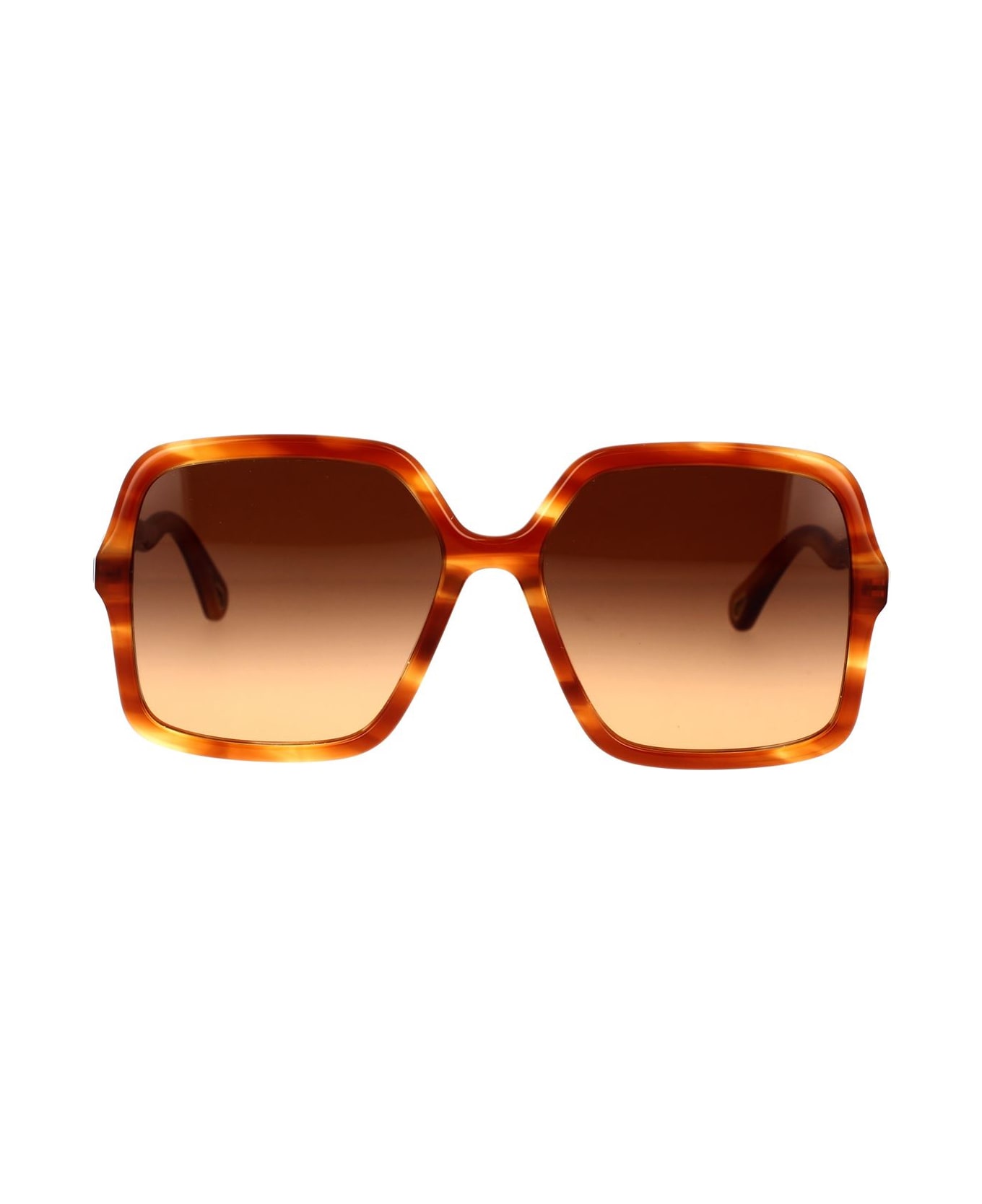With their feminine and easy-to-wear style, Zelie square sunglasses by Chloé are perfect to match any look. The classic square shape and the emblematic Chloé wavy pattern on the temples make this model truly iconic. Blonde Havana frame with brown/orange gradient lenses. These sunglasses feature drop-shaped openings decorated with Chloé logo to match with Chloé eyewear jewellery. 100% UVA and UVB protection. Chloé logo engraved on the left temple. Sunglasses supplied with case and lens cleaning cloth.
