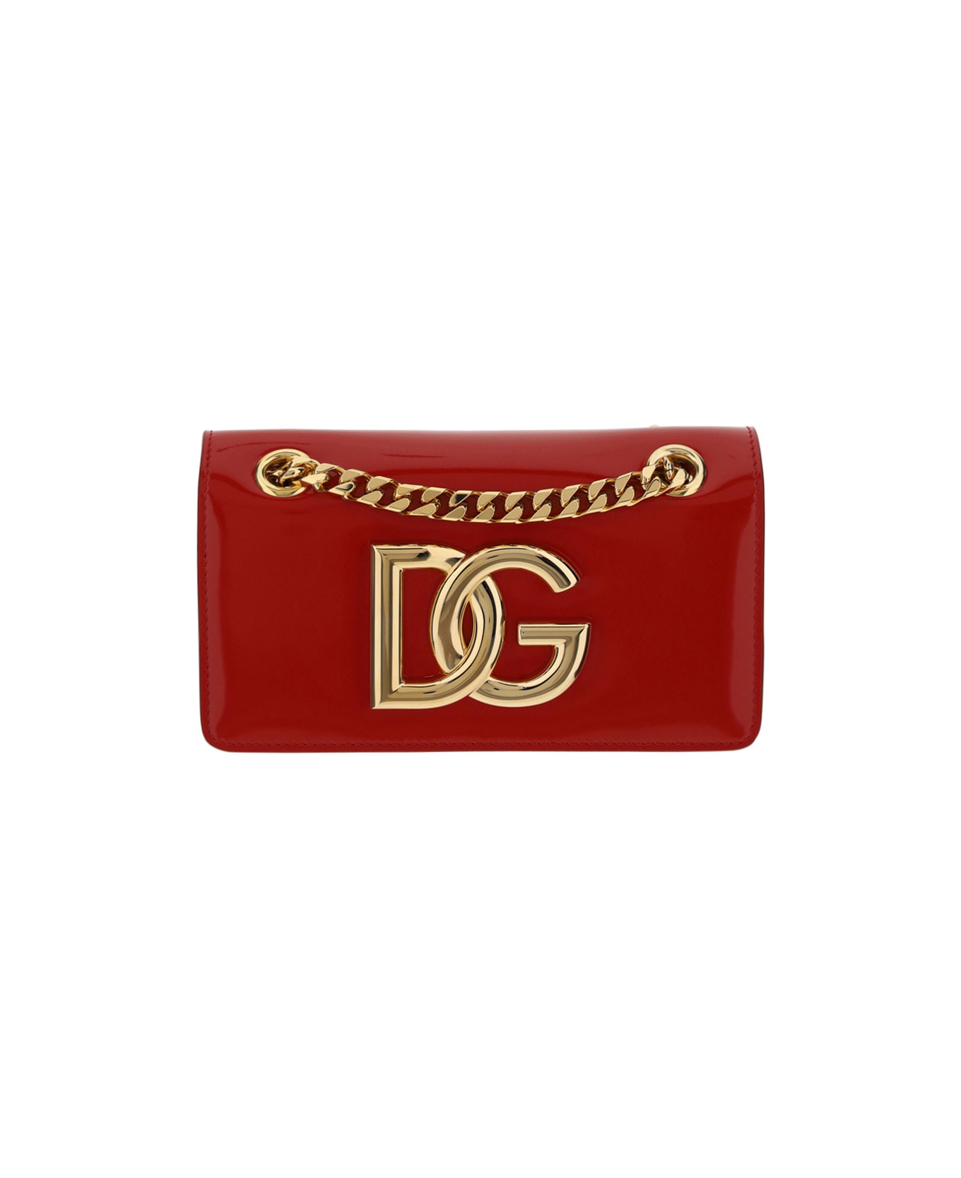 Calfskin phone bag by dolce&gabbana, shiny leather design, contrasting embossed iconic brand monogram on the front, sliding chain, magnetic snap button opening, card slot inside. Composition: 100% % Calf Leather Bos Taurus