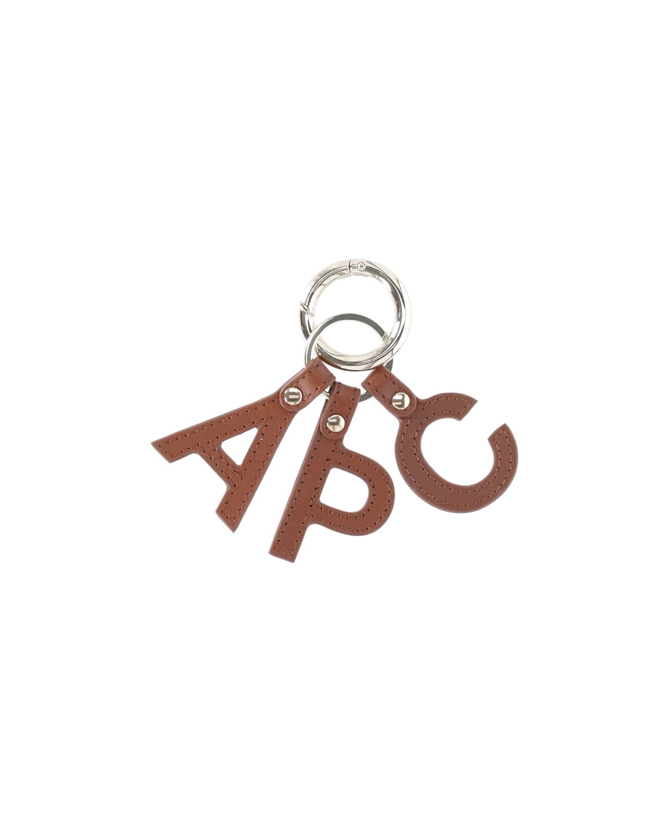 - Brown A. P. C. leather keychain fro woman - Carabiner fastening - Lettering details