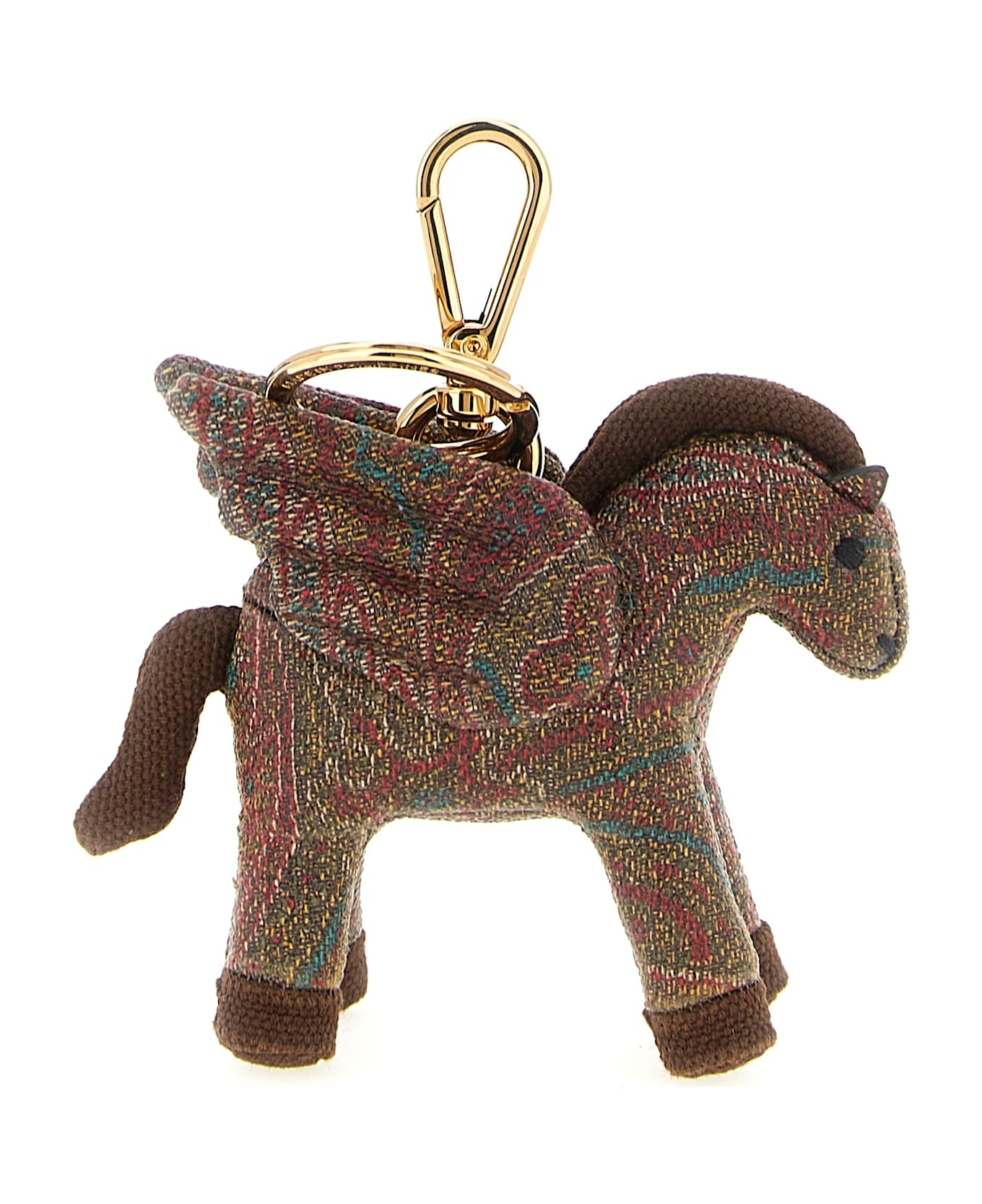'Pegaso' keyring in 'Arnica' Paisley jacquard fabric with solid cotton details, snap hook and metal keyring ring. Composition: 76% cotton, 24% polyester