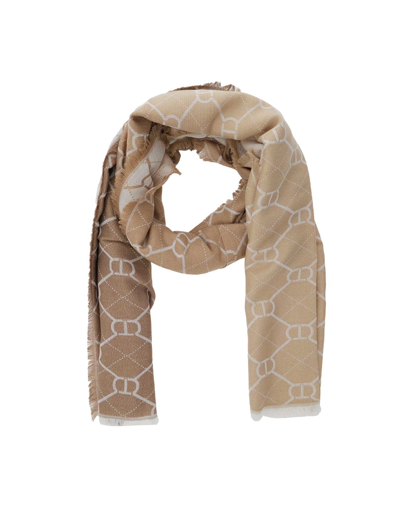 Stole Beige Logo lettering All-over logo motif Fringes on the edges Viscose blend Dimensions: 85 x 190 cm